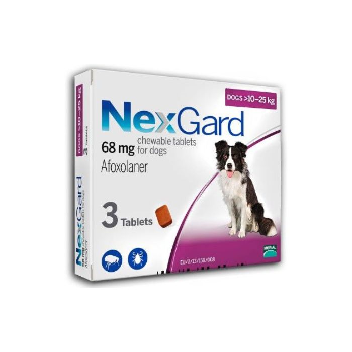 - 10-25 кг – 1 таблетка NexGard 68 мг;