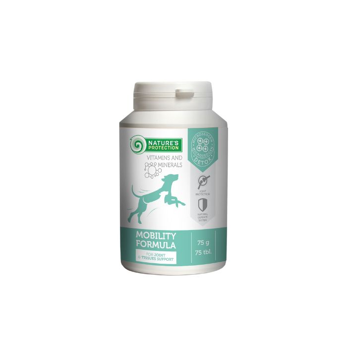 Nature's Protection Mobility Formula - це спеціальна добавка, що містить необхідні та натуральні компоненти, зокрема й кліноптилоліт вулканічного походження з природи – мікроцеоген. Ця добавка розроблена для підтримки рухової системи собак і сприяння здоров'ю суглобів і тканин, захисту клітин і запобігання розпаду відходів метаболізму, які можуть пошкодити клітини. Крім очищення організму від накопичених токсинів, сприяє регенерації сполучної тканини та суглобового хряща, підтримуючи рухливість і загальний стан здоров'я вашого собаки.