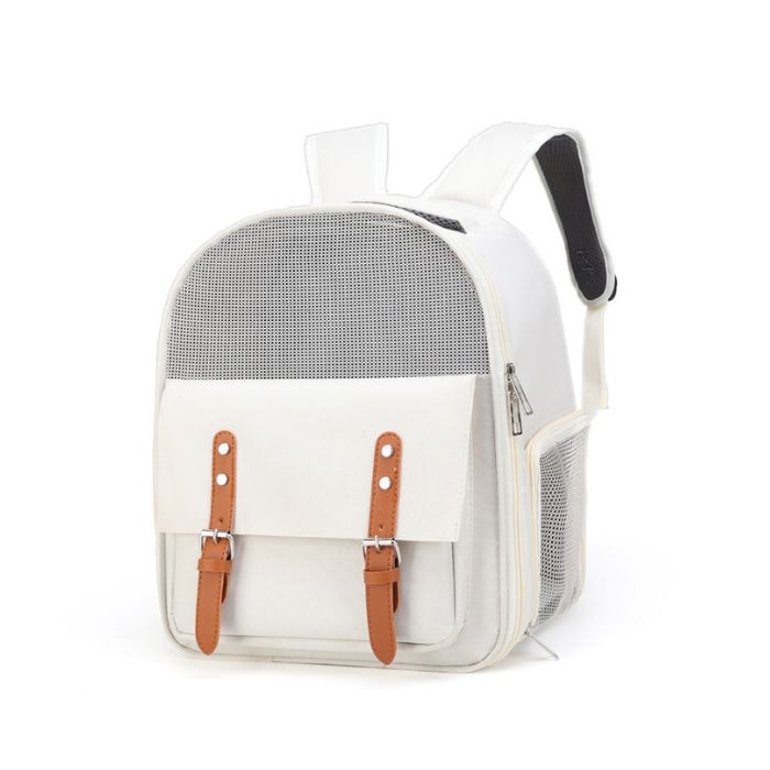 Сумка-переноска має форму рюкзака, з лаконічними деталями та зручною кишенею, куди ви зможете покласти корисні дрібнички, які можуть знадобитися вашому улюбленцю під час поорожі.