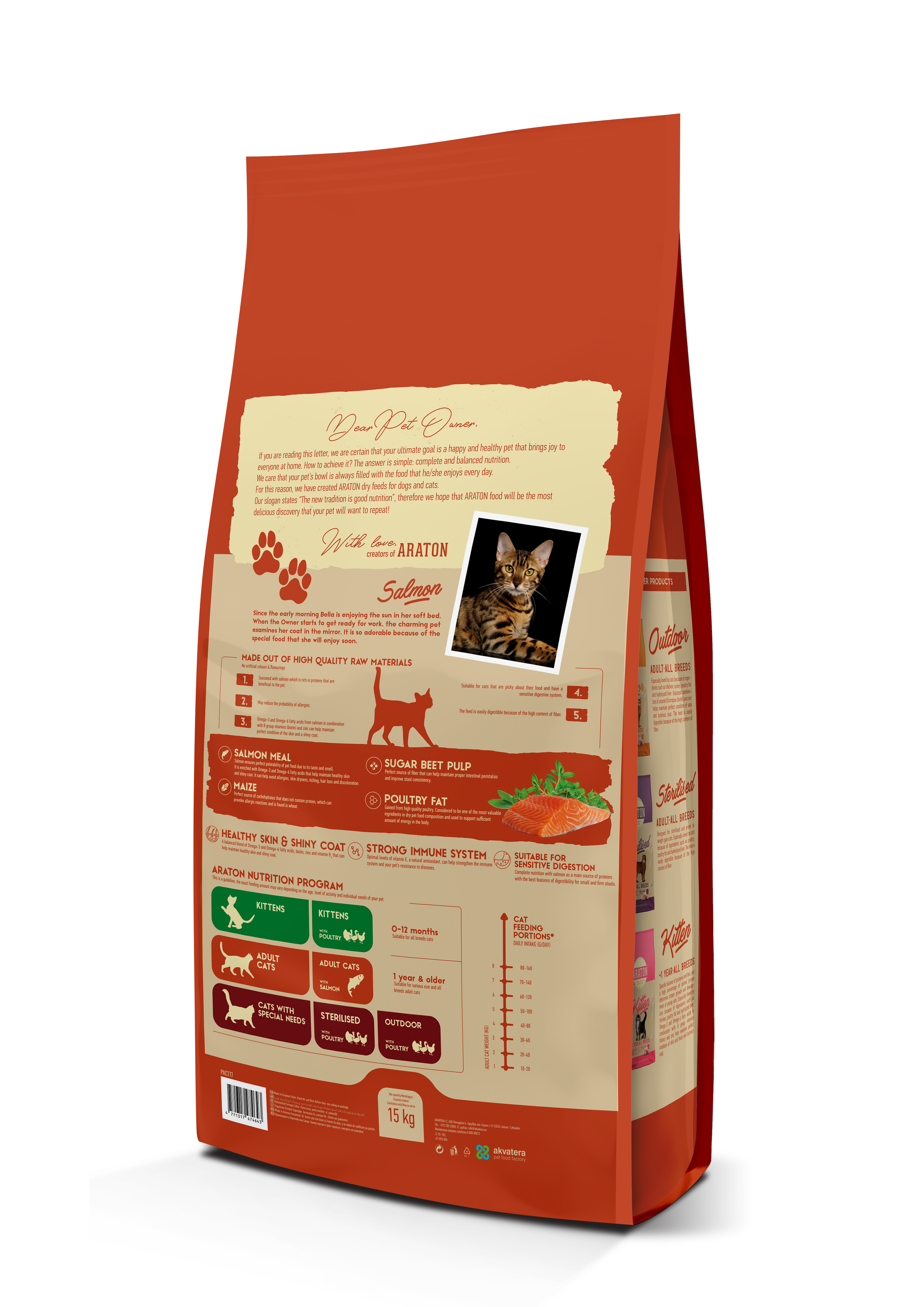 Araton Adult with Salmon – повнораціонний сухий корм з лососем для дорослих котів усіх порід.