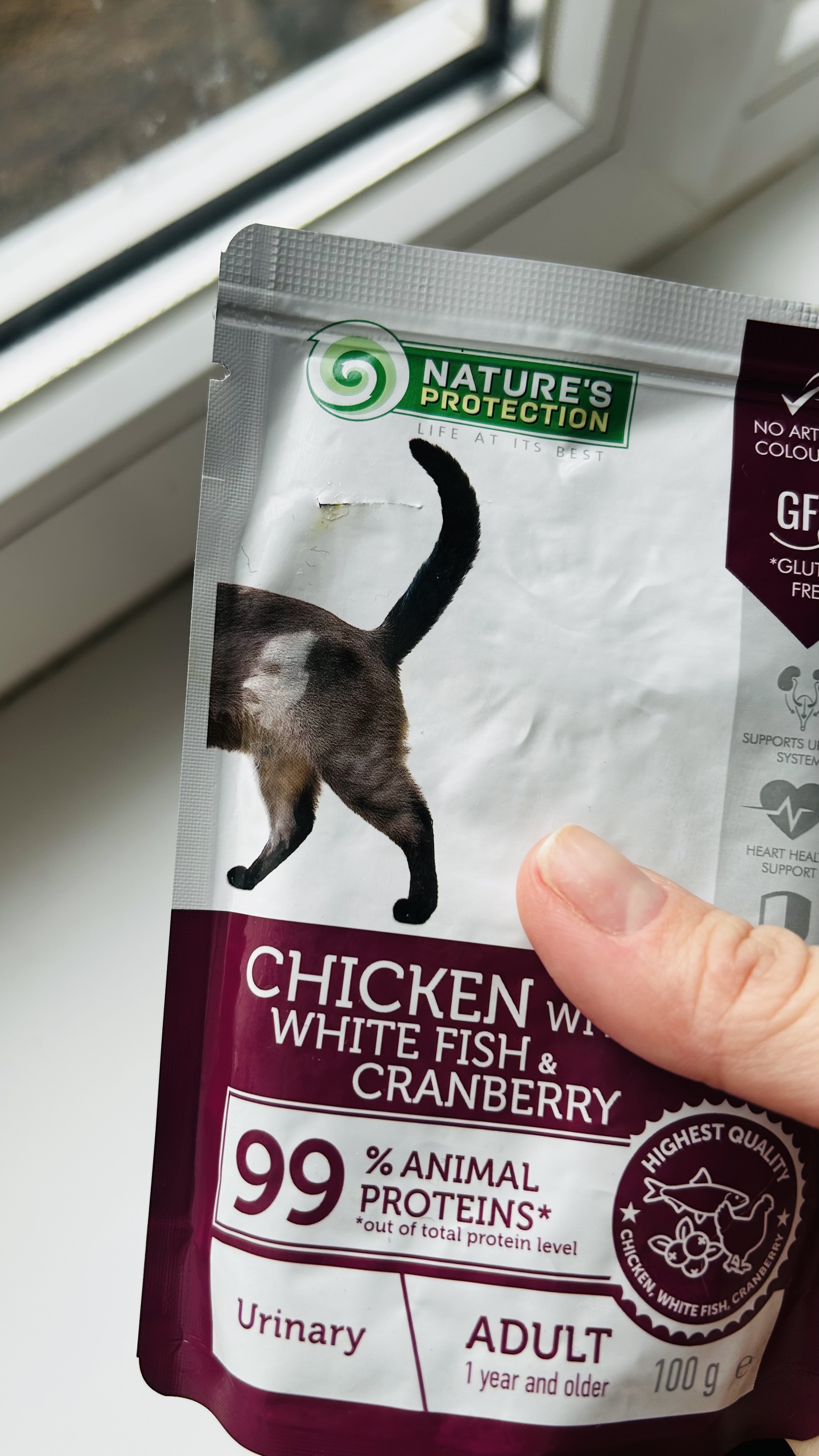 Nature’s Protection Urinary, Chicken with White Fish & Cranberry – це супер-преміум повнораціонний вологий корм для дорослих котів із куркою, білою рибою та журавлиною у смачному соусі, доповнений мінералами. Спеціальна формула сприяє підтримці здоров’я сечовивідної системи, здоров’я серця та зміцненню захисних функцій організму. Основне джерело білка в цьому продукті – високоякісні курка та біла риба, що мають високу харчову цінність. Корм – м’який і легко пережовується, а склад м’яса та соусу – легкозасвоюваний. Вологий корм Nature’s Protection розроблений із урахуванням різних потреб молодих і дорослих кішок. Спеціальна рецептура дає змогу зберігати натуральний смак і апетитний аромат. Вологий корм, приготований в оптимальному обсязі, зручно використовувати в домашніх умовах, під час подорожей і виставок. Продукт не містить свинини – важкозасвоюваного інгредієнту для домашніх тварин.