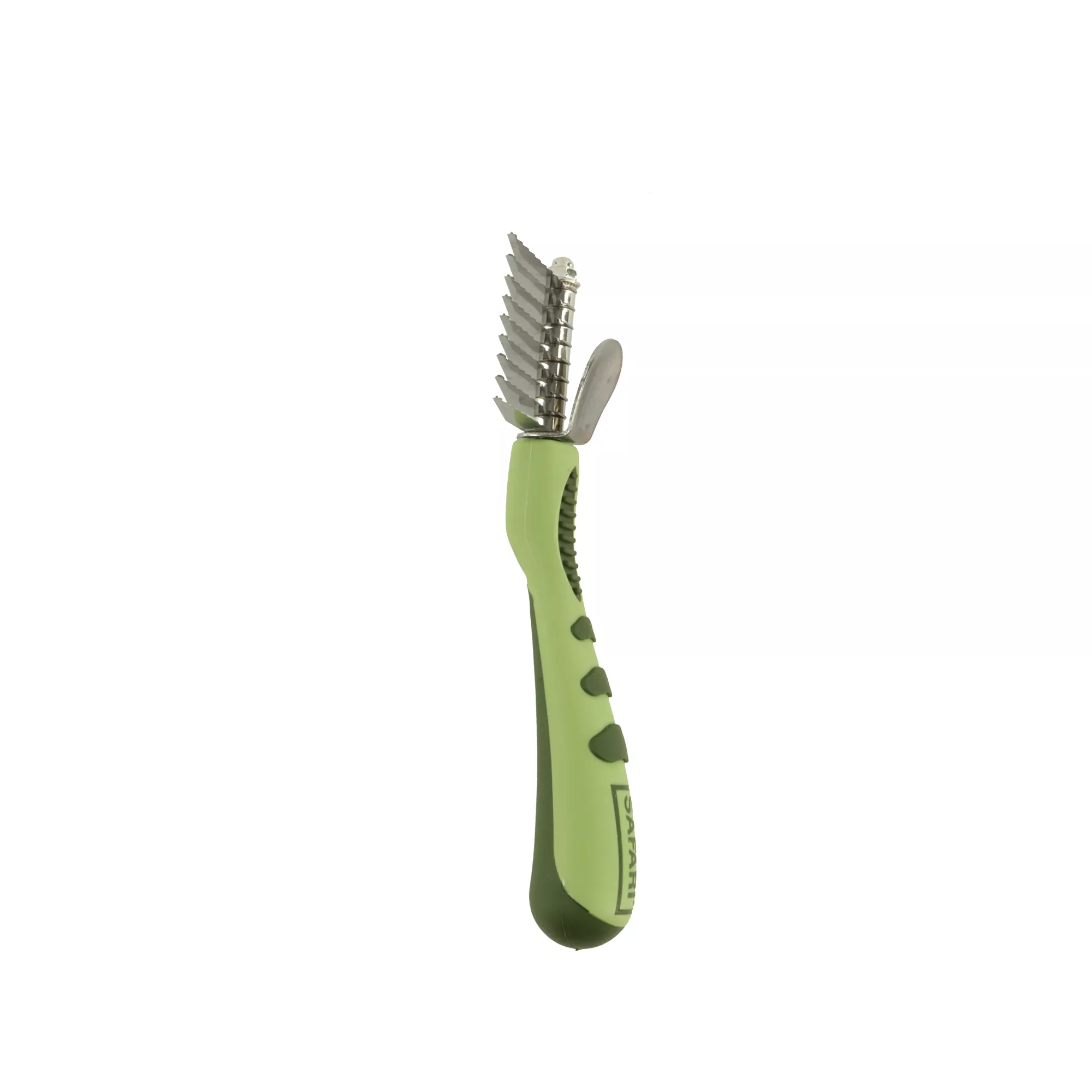 Ковтуноріз Safari Dematting Comb підходить для регулярного домашнього використання та професійного грумінгу. Допомагає підтримувати шерсть у доглянутому стані, сприяє природному блиску та здоров’ю волосків, стимулює мікроциркуляцію шкіри й поліпшує обмінні процеси на поверхні дерми. Це надійний і практичний інструмент для регулярного догляду за шерстю улюбленців, що поєднує ефективність, безпеку та зручність використання.