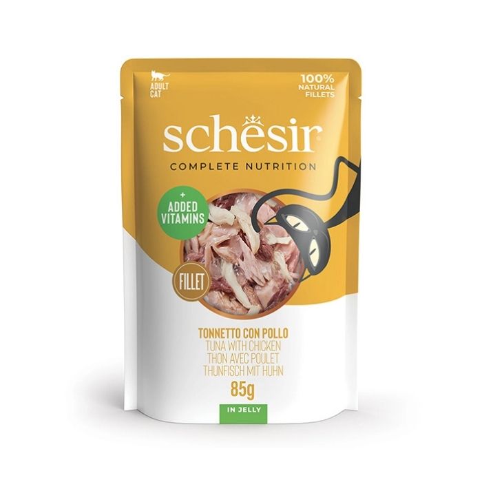 Вологий корм для дорослих котів Schesir виготовлений із ніжних шматочків філе тунця з додаванням невеликої кількості курячого філе та вареного рису. Корм готується на пару та обробляється мінімально вручну, що дає змогу зберегти природний смак і поживну цінність інгредієнтів.