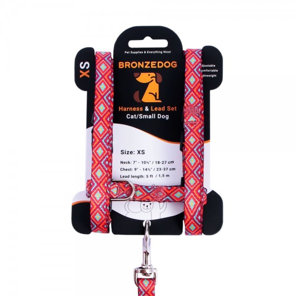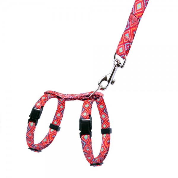 Barksi Urban Шлея з повідцем для котів і дрібних собак Гуцульська з нашивкою, червона, розмір 2ХS - 2
