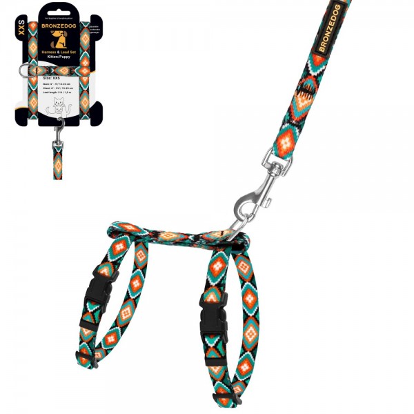 Barksi Urban Шлея з повідцем для котів і дрібних собак Ромби з нашивкою, розмір 2ХS - 2