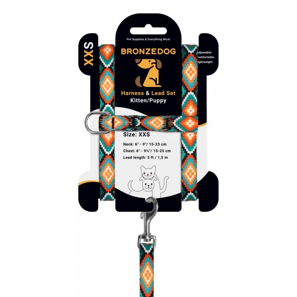Barksi Urban Шлея з повідцем для котів і дрібних собак Ромби з нашивкою, розмір 2ХS
