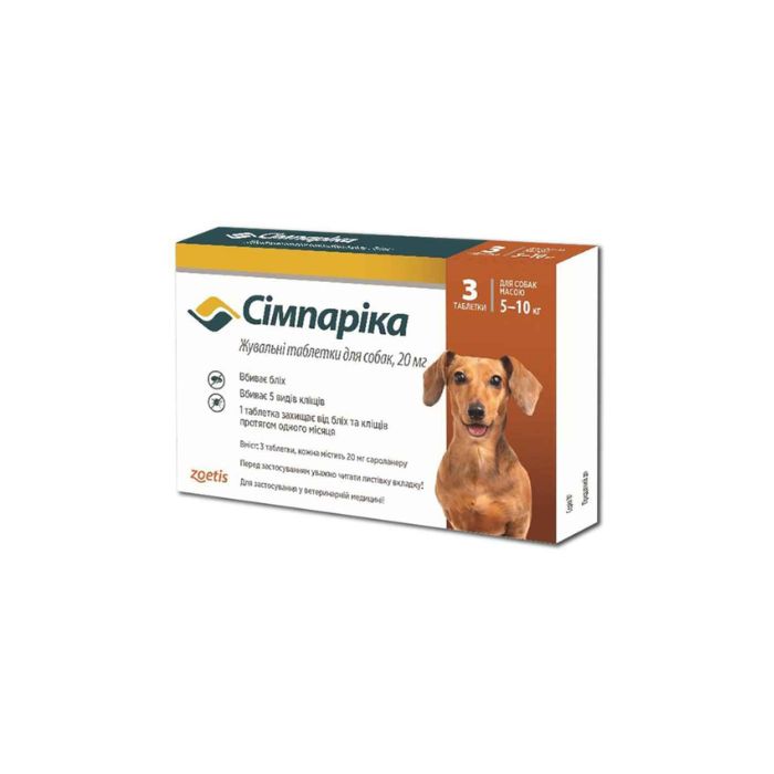 Сімпарика жувальні таблетки, для собак 5-10 кг, 20 мг