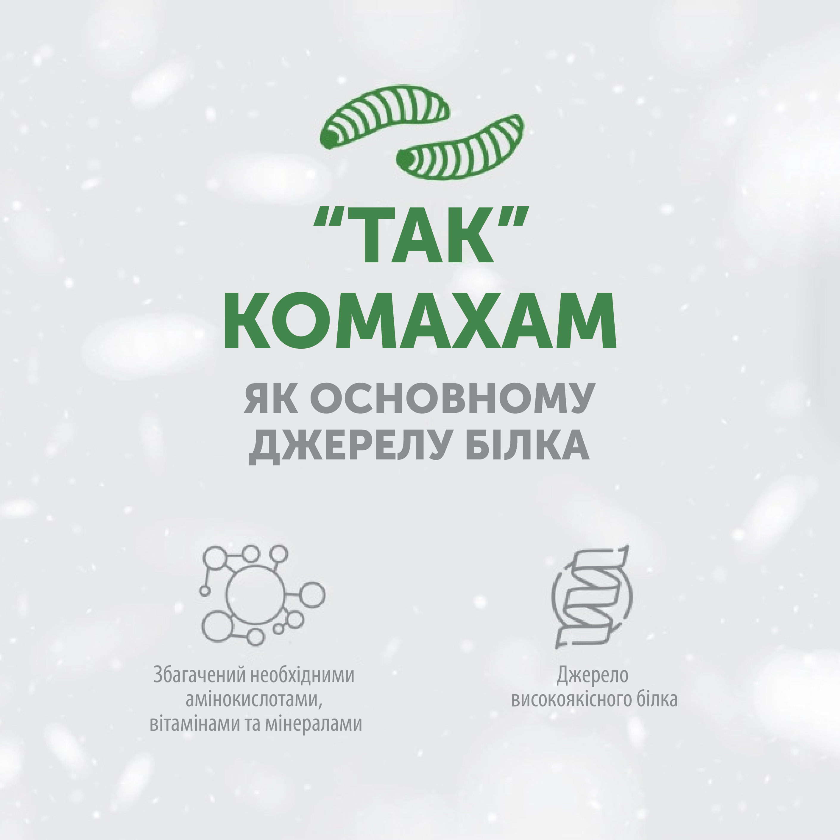 Протеїн комах: гіпоалергенний, легко засвоюваний, збагачений поживними речовинами білок, що забезпечує організм необхідними амінокислотами.
