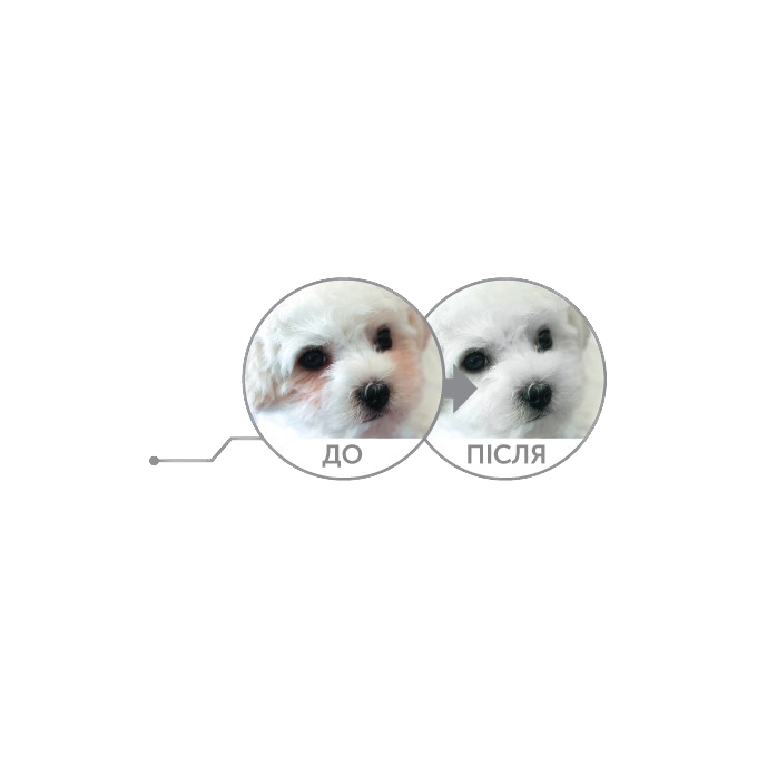 - Збалансований комплекс амінокислот: допомагає боротися з появою коричневих плям від сліз і підтримувати здоров’я шкіри та шерсті