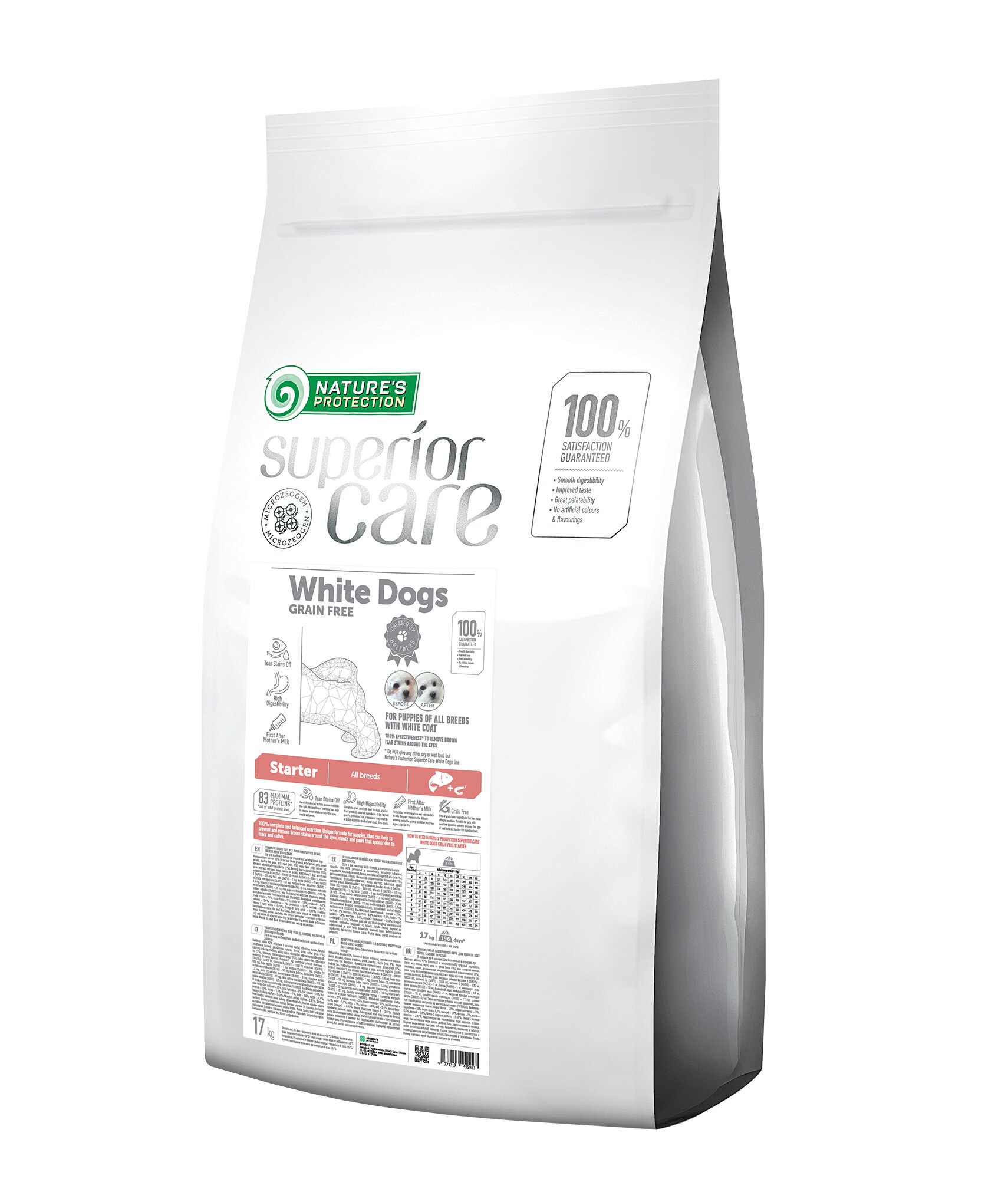 Nature's Protection Superior Care White Dogs Grain Free Salmon Starter All Breeds Сухий беззерновий корм (стартер) для цуценят усіх порід з лососем, 17 кг