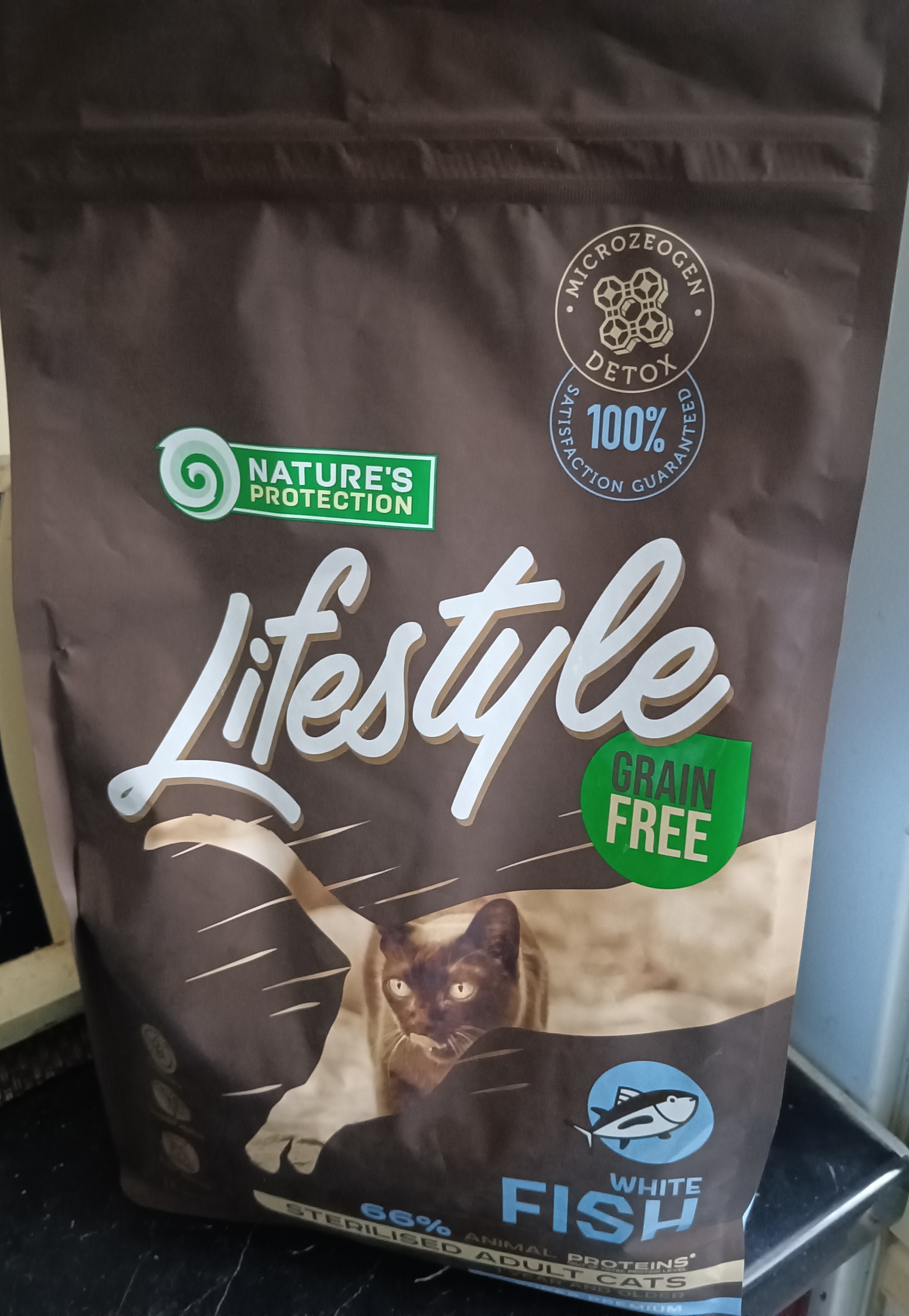 Nature’s Protection Lifestyle Grain Free з білою рибою для стерилізованих дорослих котів — це повноцінний і збалансований сухий корм супер преміум класу з джерелом протеїну та сировини найвищої якості. Спеціально розроблений для дорослих котів, щоб допомогти їм відновитися після стерилізації. Він містить менше калорій і доповнений інноваційними інгредієнтами, які допомагають підтримувати оптимальну вагу та зменшувати зайву вагу. Повний склад цього сухого котячого корму не тільки забезпечить вашого вихованця всіма ефективними поживними речовинами, але також забезпечить ідеальну засвоюваність і підтримку здоров’я сечовидільної системи.