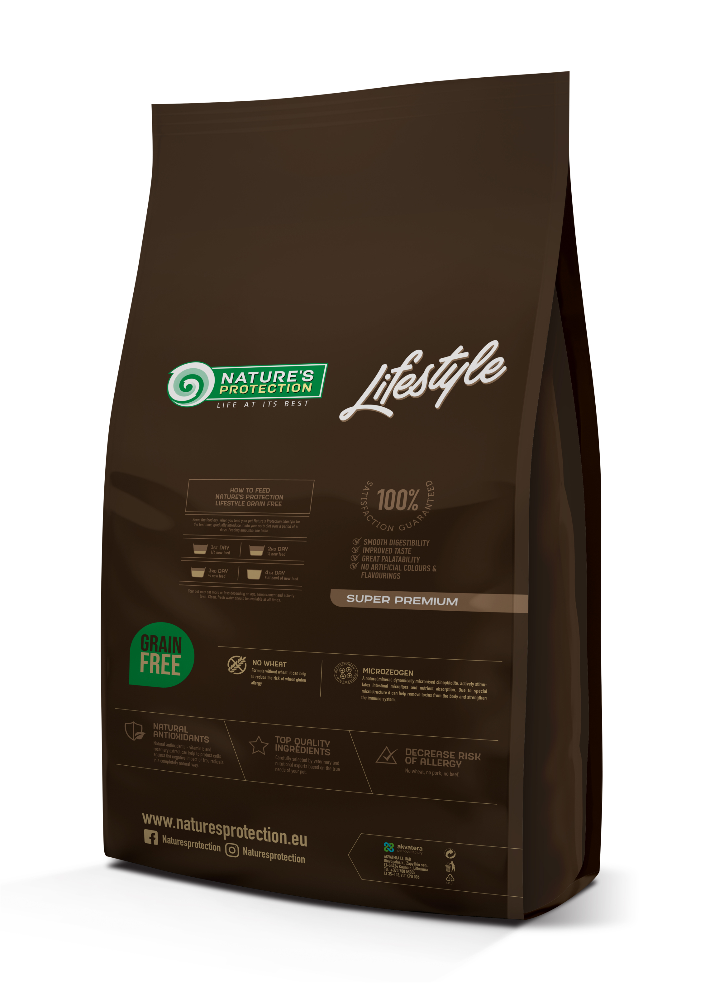 Nature’s Protection Lifestyle Grain Free з білою рибою для стерилізованих дорослих котів — це повноцінний і збалансований сухий корм супер преміум класу з джерелом протеїну та сировини найвищої якості. Спеціально розроблений для дорослих котів, щоб допомогти їм відновитися після стерилізації. Він містить менше калорій і доповнений інноваційними інгредієнтами, які допомагають підтримувати оптимальну вагу та зменшувати зайву вагу. Повний склад цього сухого котячого корму не тільки забезпечить вашого вихованця всіма ефективними поживними речовинами, але також забезпечить ідеальну засвоюваність і підтримку здоров’я сечовидільної системи.