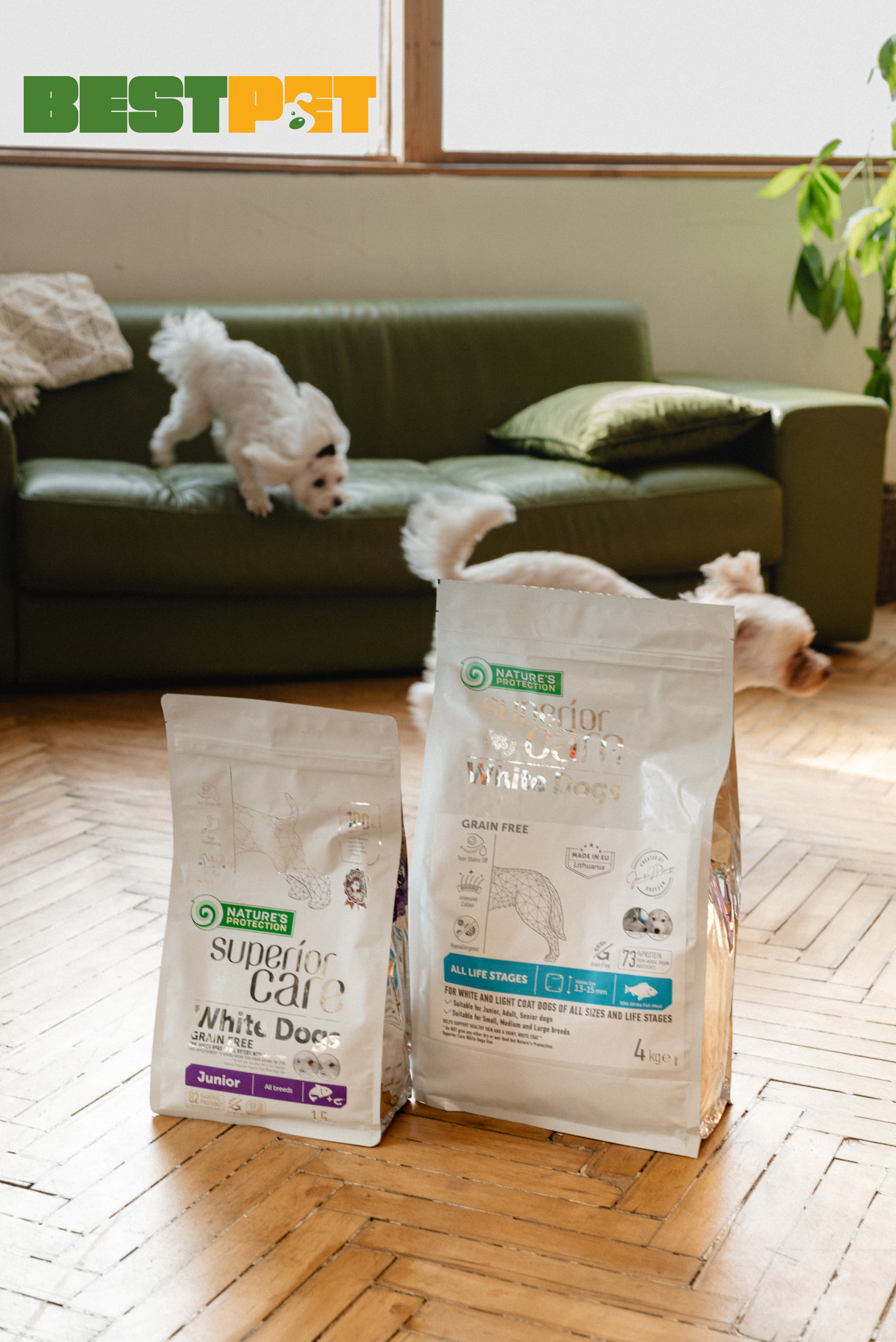 Корми з лінійки Nature’s Protection Superior Care White Dogs підходять усім собакам, незалежно від забарвлення шерсті та не впливають на її колір. Ця серія кормів була розроблена спеціально для усунення коричневих плям від сліз, які найпомітніші саме на білій і світлій шерсті вихованців. Проте включення цього корму до раціону собак із темним забарвленням шерсті не призводить до її висвітлення або зміни кольору.