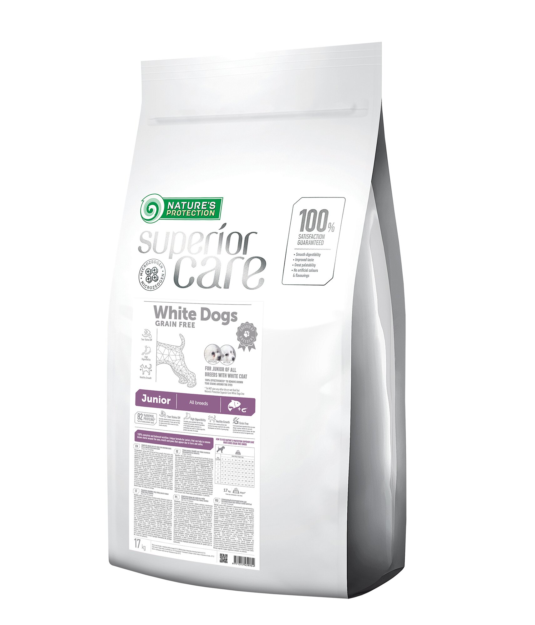 Nature's Protection Superior Care White Dogs Grain Free Salmon Junior All Breeds Сухий беззерновий корм для юніорів усіх порід з лососем, 17 кг