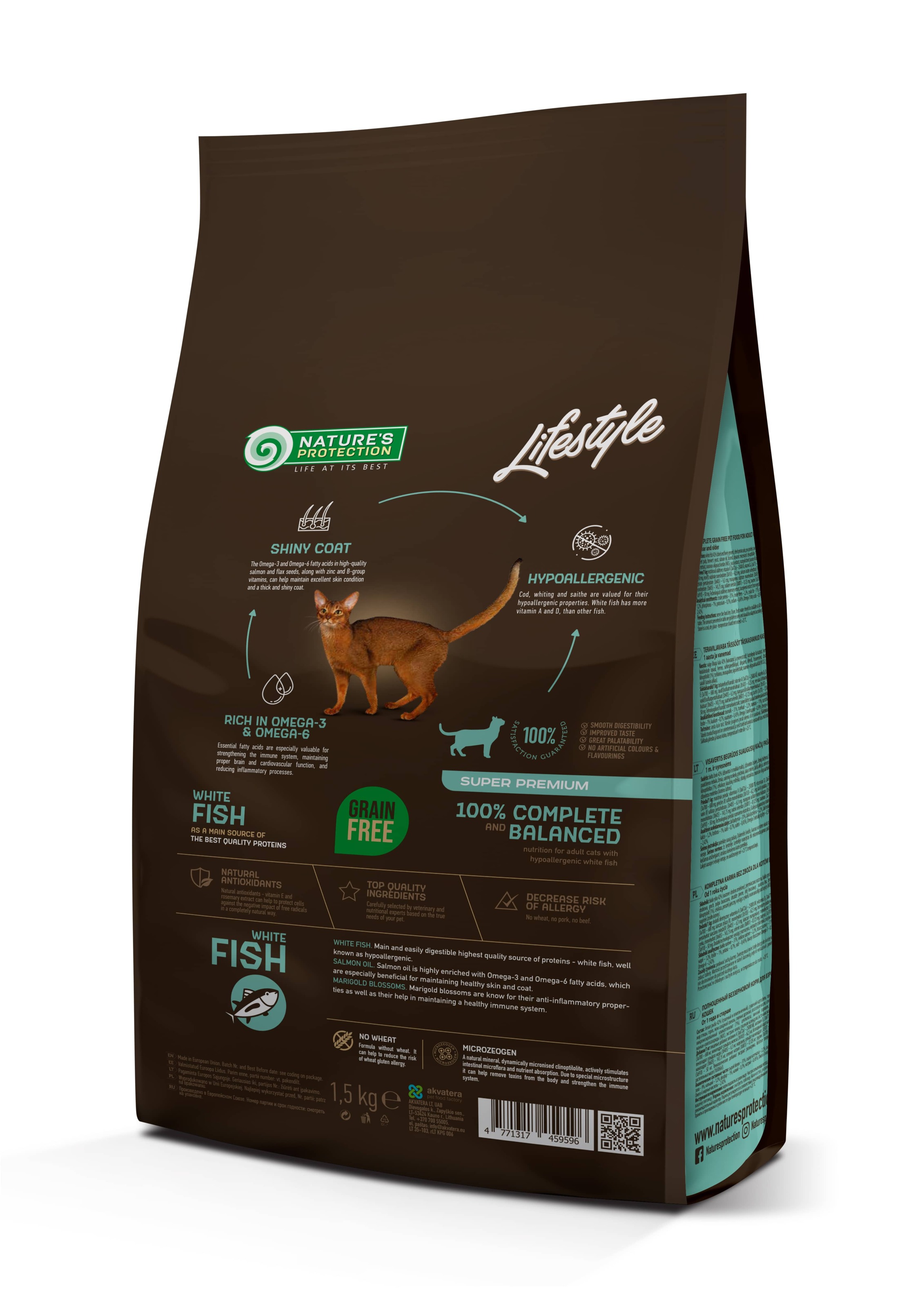 Nature's Protection Lifestyle Adult White fish Сухий беззерновий корм для котів з білою рибою, 1,5 кг