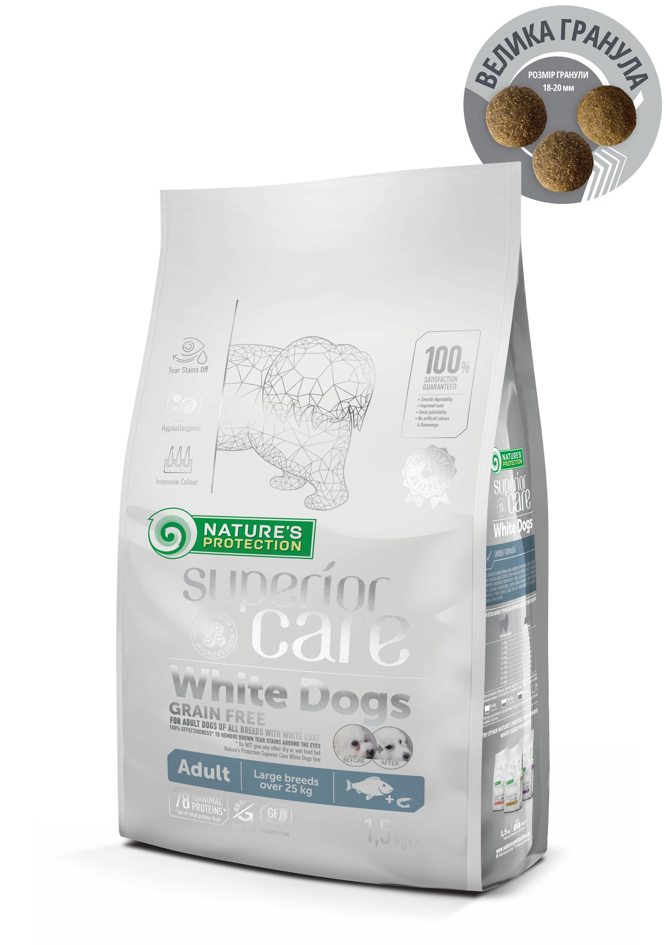 Nature's Protection Superior Care White Dogs Grain Free White Fish Adult Large Breeds Сухий беззерновий корм для дорослих собак великих порід з білою рибою, 1,5 кг