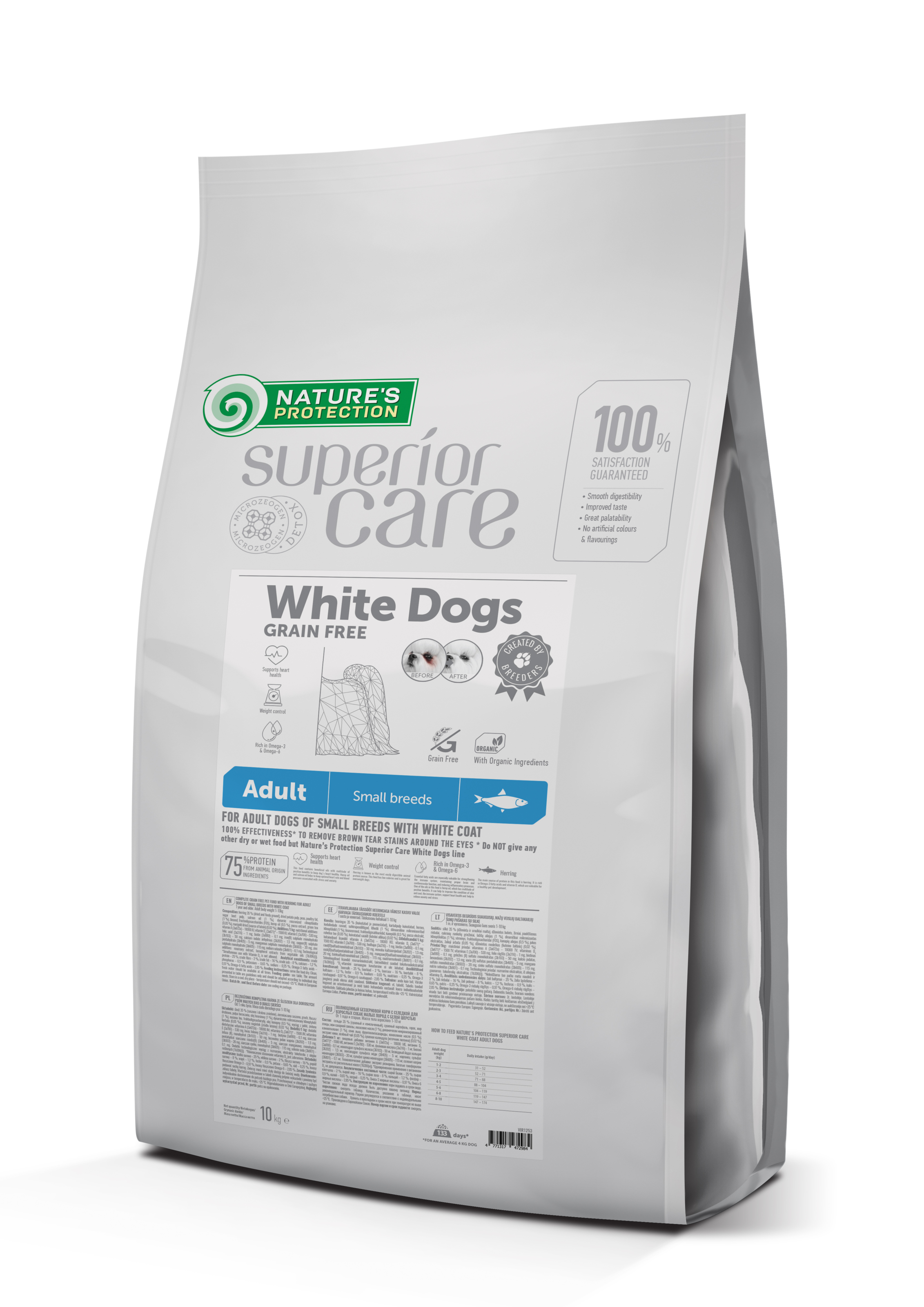 Корми з лінійки Nature’s Protection Superior Care White Dogs підходять усім собакам, незалежно від забарвлення шерсті та не впливають на її колір. Ця серія кормів була розроблена спеціально для усунення коричневих плям від сліз, які найпомітніші саме на білій і світлій шерсті вихованців. Проте включення цього корму до раціону собак із темним забарвленням шерсті не призводить до її висвітлення або зміни кольору.
