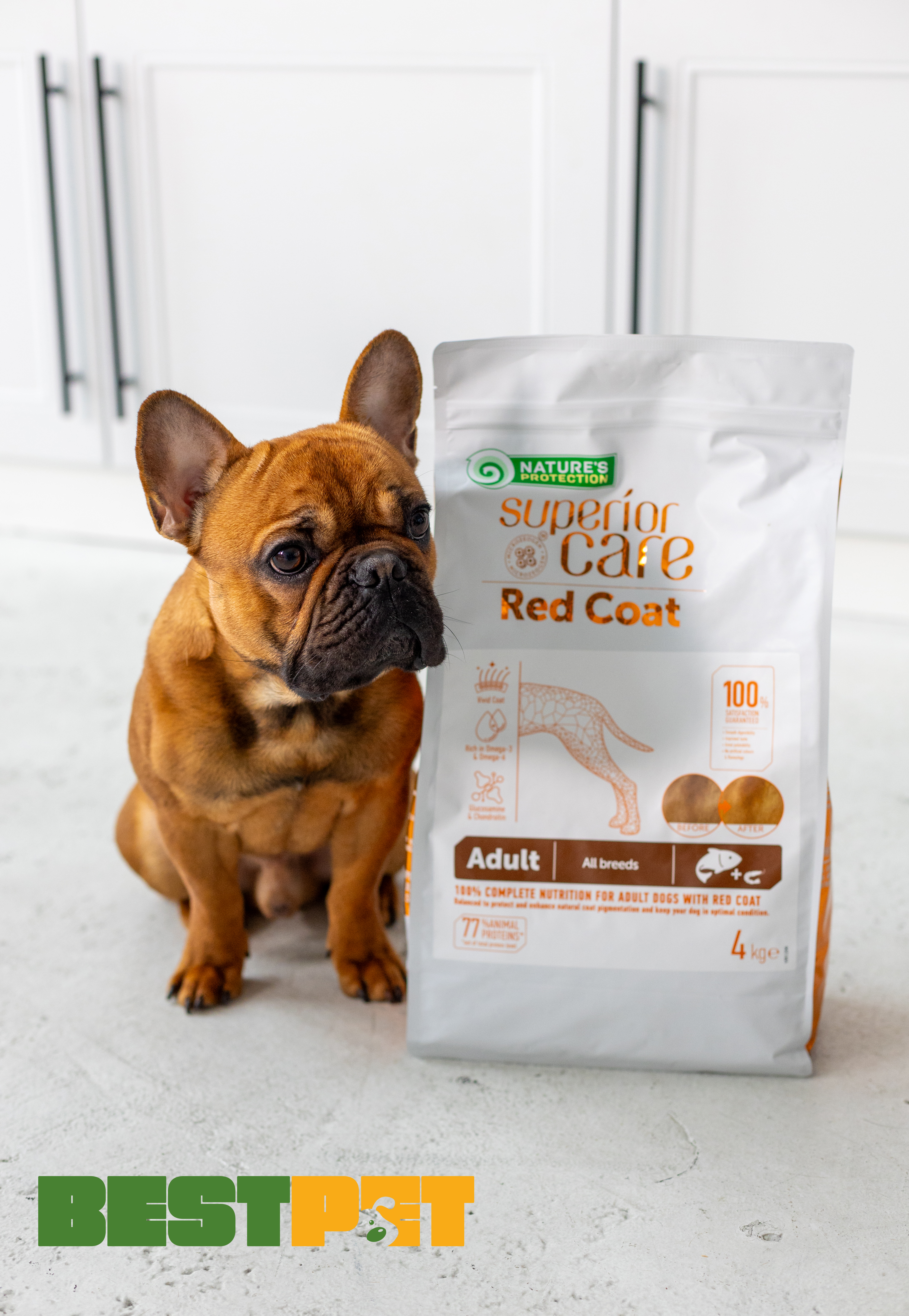 Nature's Protection Red Coat Grain Free with Salmon для дорослих собак усіх порід – це повнораціонний збалансований сухий корм супер преміум класу з джерелом білка та сировиною найвищої якості. Повнораціонний сухий корм містить RCE (Red Coat Enhancer) – ретельно підібраний комплекс амінокислот і повністю збалансовані інгредієнти, які допомагають захистити та посилити природну пігментацію коричневої та рудої шерсті, а також підтримувати чіткий підшерсток та склад слини. Продукт збагачений інгредієнтами, які забезпечують ідеальну ефективність для гарного самопочуття улюбленця. Повноцінний склад не тільки забезпечить вашого улюбленця ефективними поживними речовинами, але й гарантує ідеальну засвоюваність та смакові якості корму.