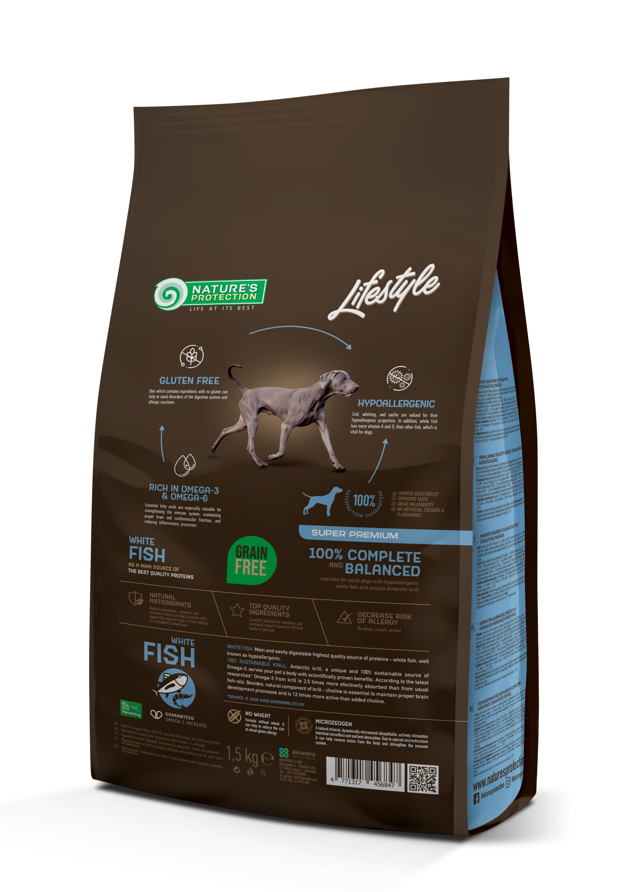 Nature's Protection Lifestyle Grain Free White fish Adult All Breeds Сухий беззерновий корм для собак усіх порід з білою рибою, 1,5 кг