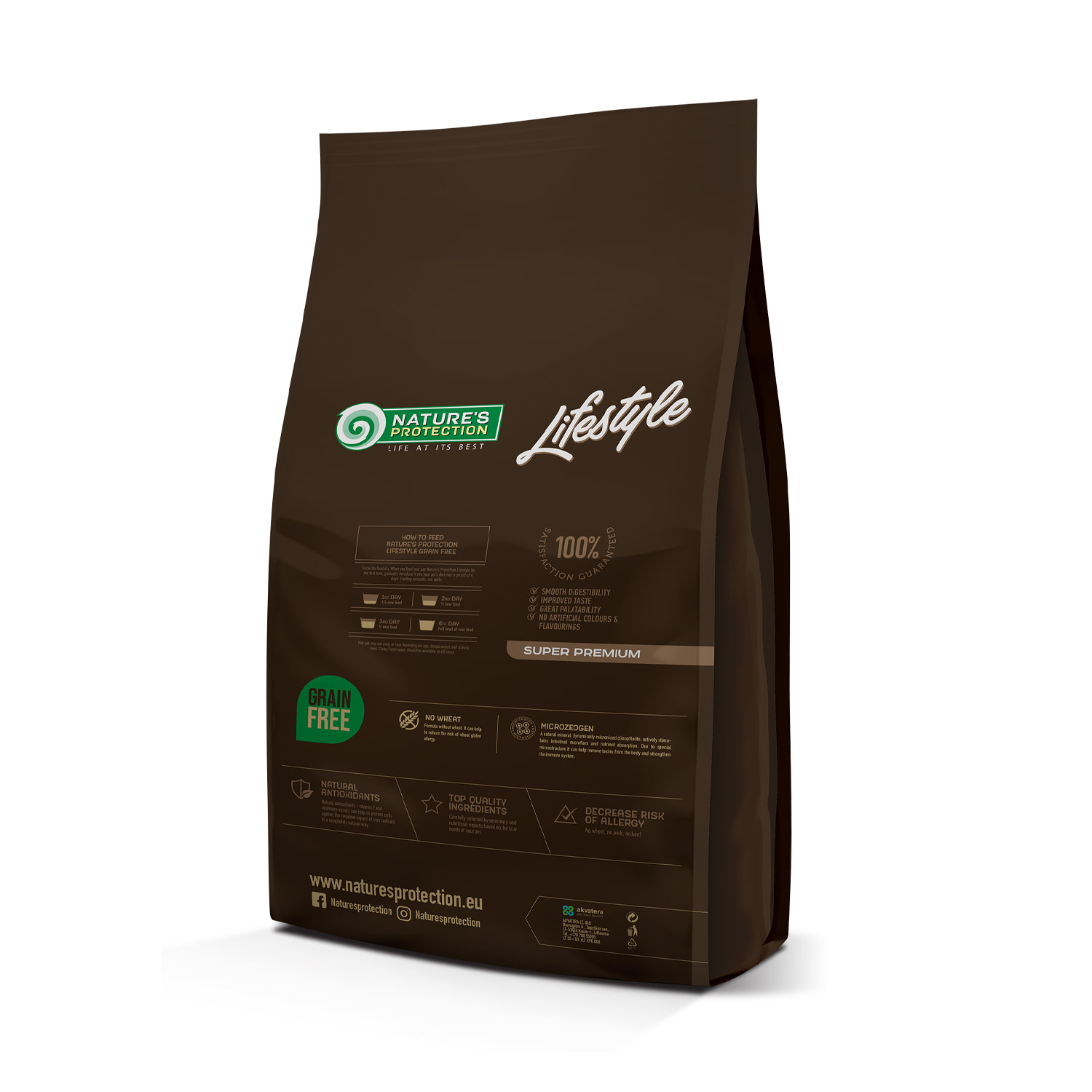 NATURE'S PROTECTION Lifestyle – лінійка сухих кормів супер преміум класу, відома інноваційними інгредієнтами та провідними технологіями здорового харчування домашніх тварин. Цей повноцінний беззерновий сухий корм містить лише найякісніші інгредієнти та джерела білка. Лінійка кормів Lifestyle призначена для активних вихованців, яким потрібна достатня кількість енергії.