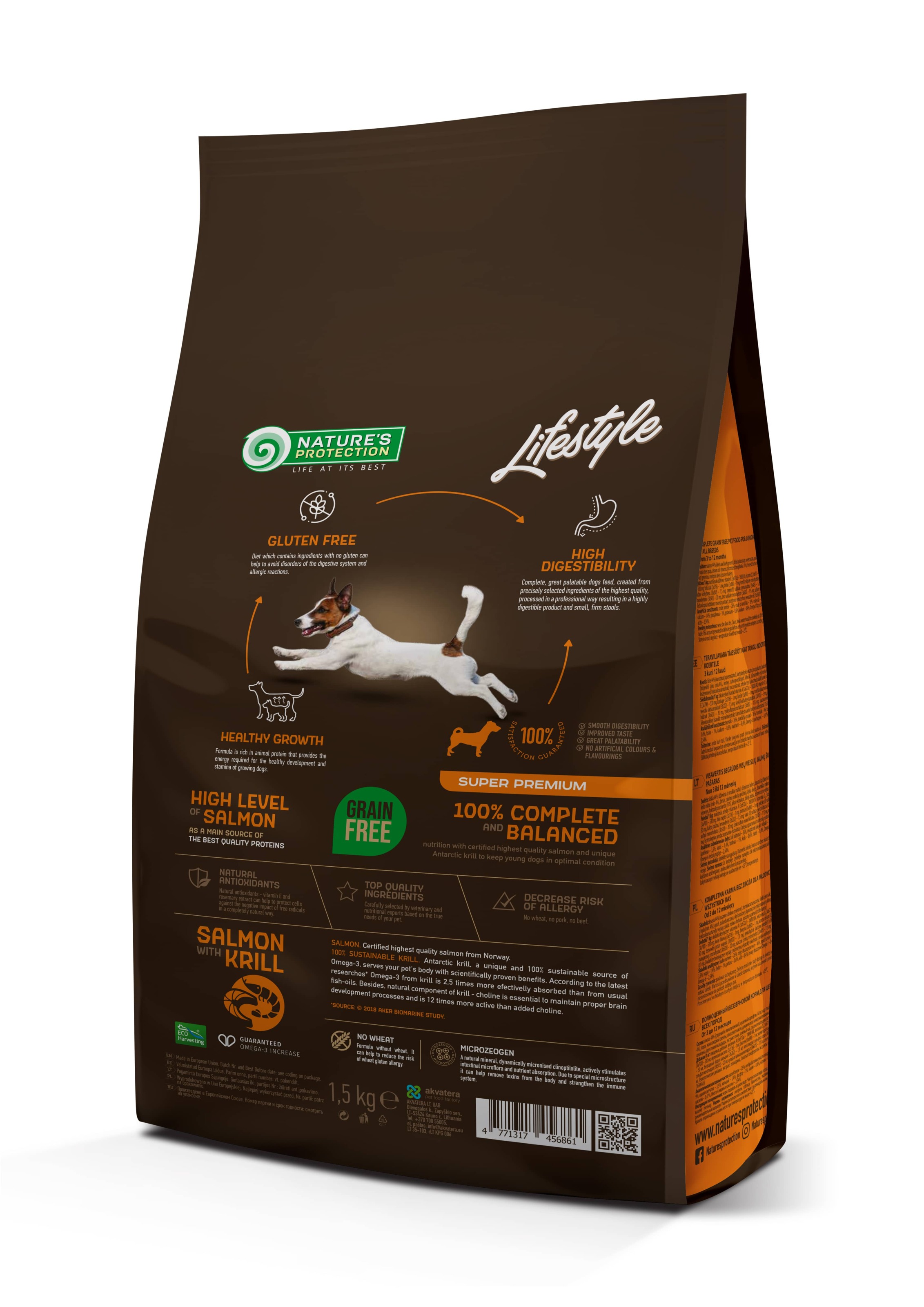 Nature's Protection Lifestyle Grain Free Salmon with Krill Juniors All Breeds Сухий беззерновий корм для юніорів усіх порід з лососем та крилем, 1,5 кг