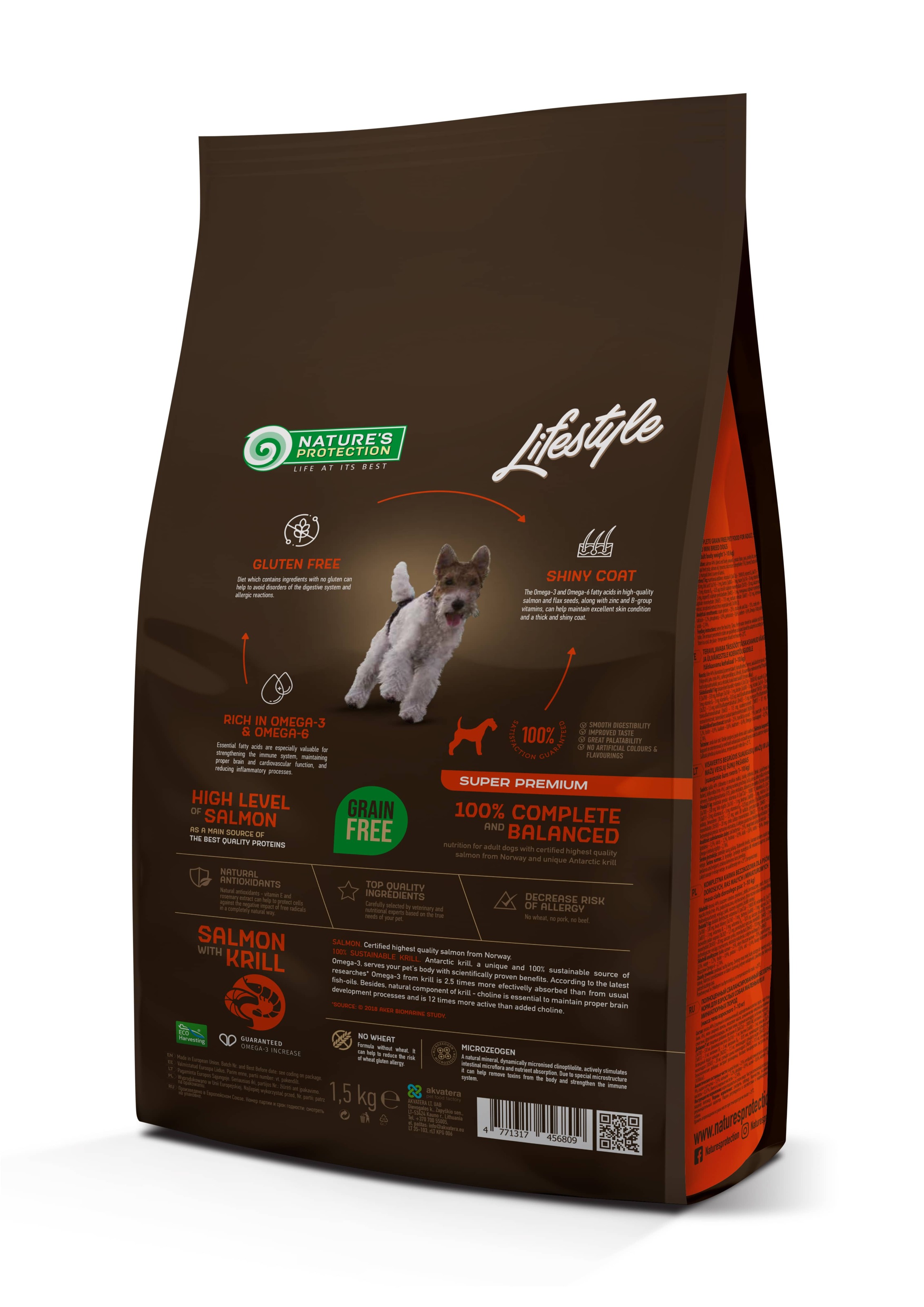 Nature's Protection Lifestyle Grain Free Salmon with Krill Adult Small and Mini Breeds Сухий беззерновий корм для собак малих порід з лососем та крилем, 1,5 кг
