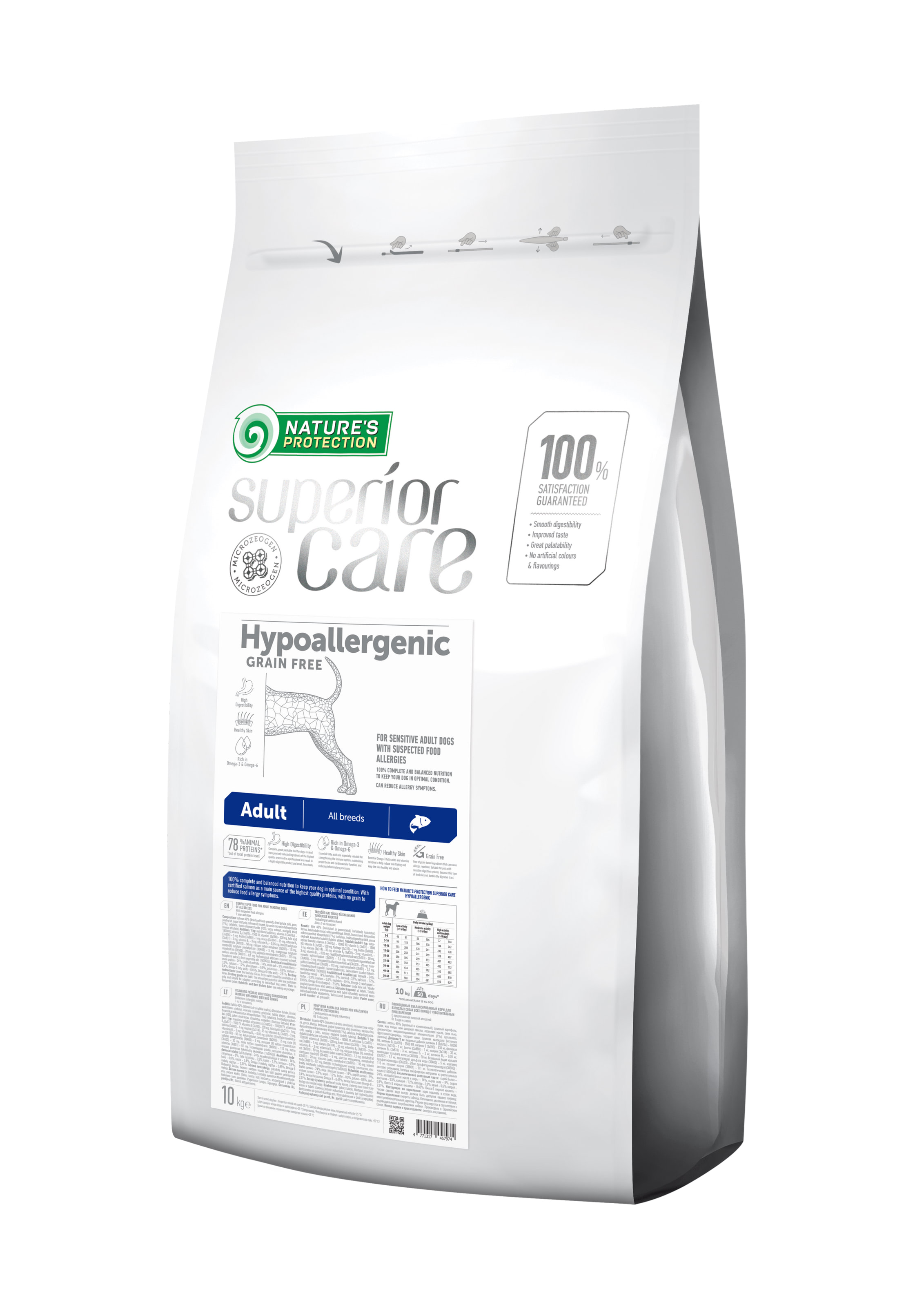Nature's Protection Superior Care Hypoallergenic Grain Free Adult All Breeds Сухий гіпоалергенний беззерновий корм для дорослих собак усіх порід з лососем, 10 кг