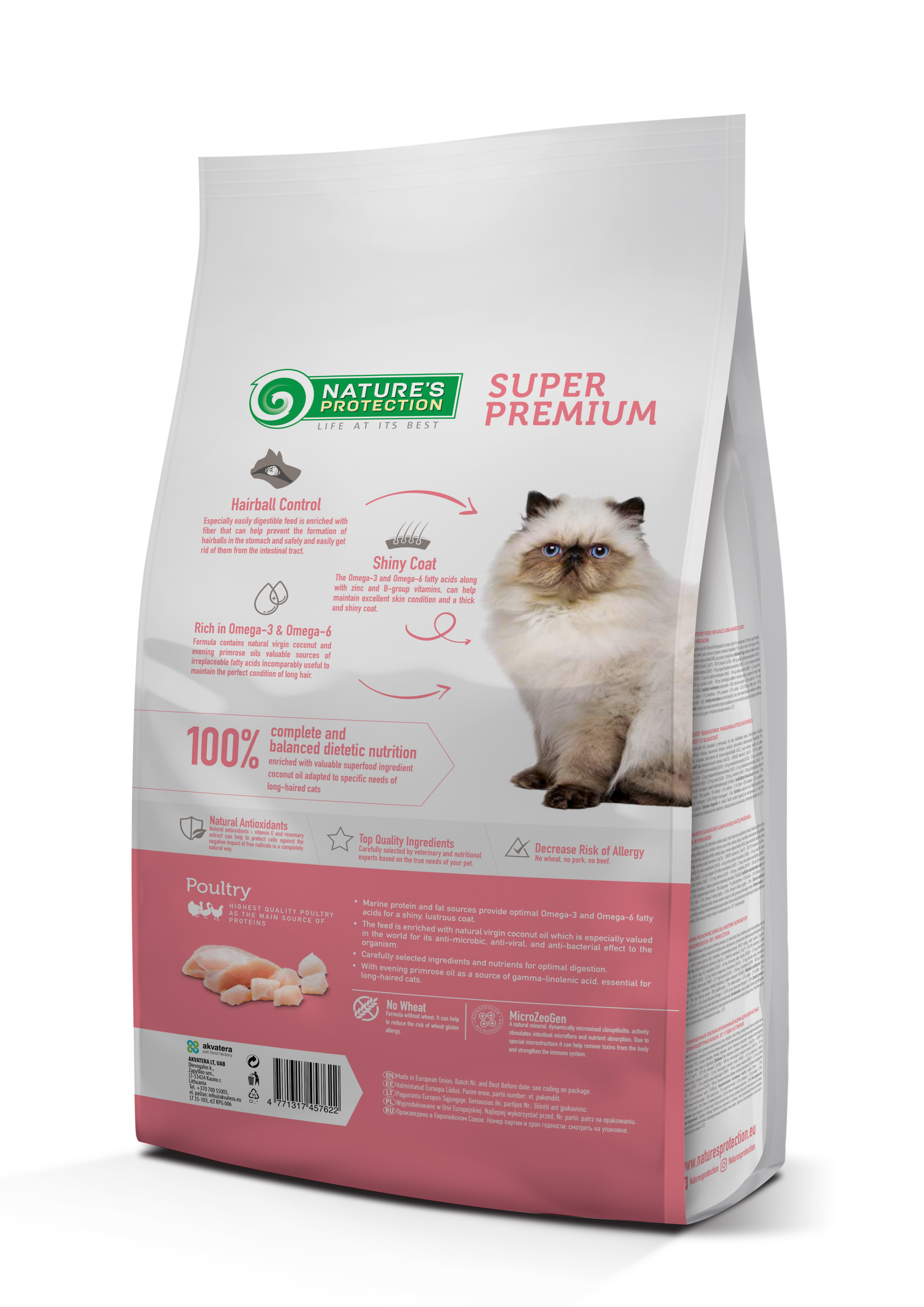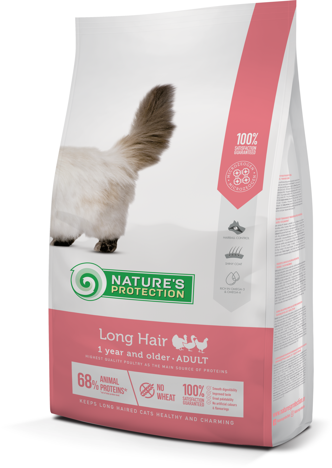 Nature's Protection Long Hair з м'ясом птиці для котів віком від 1 року – це повнораціонний збалансований сухий корм супер преміум класу з високоякісними джерелами білка та сировини. Склад цього сухого корму збагачений інгредієнтами, які ідеально підходять для забезпечення необхідної кількості калорій, вітамінів і мінералів для котів з довгою шерстю.