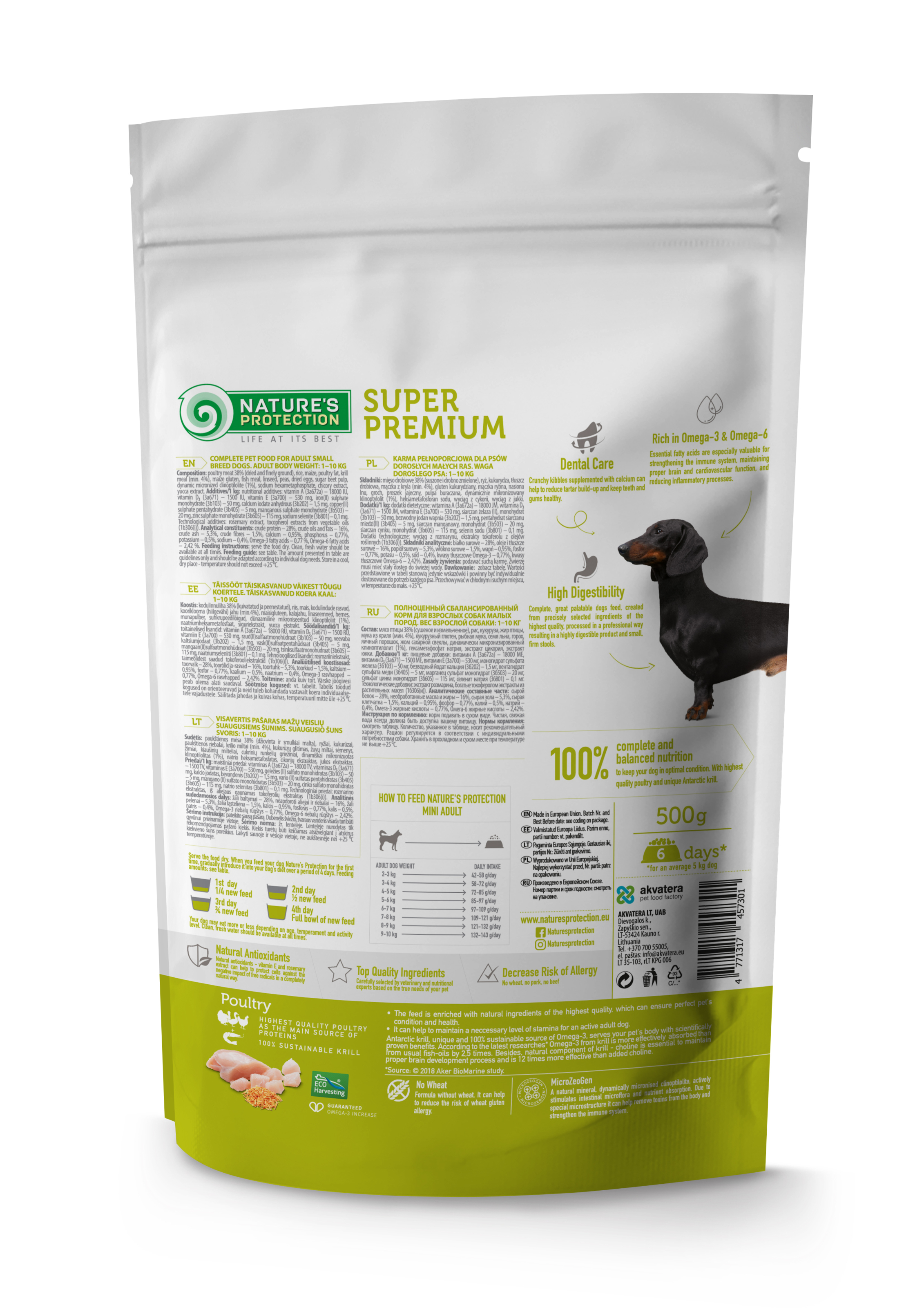 Nature's Protection Mini for Adult Small Breed Dogs with Poultry – це повнораціонний збалансований сухий корм супер преміум класу з високоякісними джерелами білка та сировиною. Склад цього сухого корму збагачений інгредієнтами, які ідеально підходять для забезпечення необхідної кількості калорій, вітамінів і мінералів. Повноцінний склад сухого корму не тільки забезпечить вашого улюбленця всіма необхідними поживними речовинами, але й гарантує ідеальну засвоюваність, смакові якості та загальний стан здоров'я.