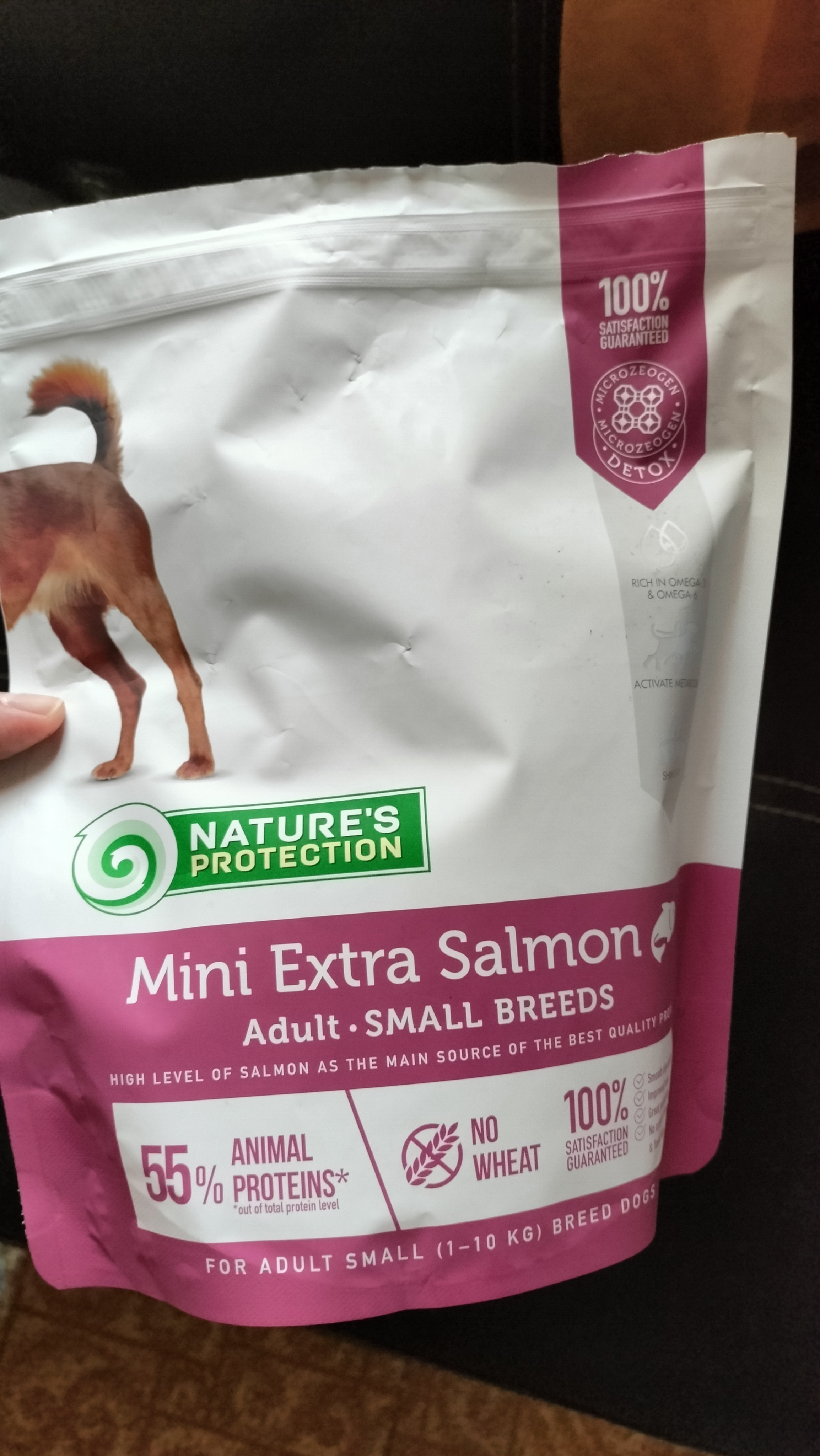 Nature's Protection Mini Extra Salmon for Adult Small Breed Dogs – це повнораціонний збалансований сухий корм супер преміум класу з високоякісними джерелами білка та сировиною. Склад цього сухого корму збагачений інгредієнтами, які ідеально підходять для забезпечення необхідної кількості калорій, вітамінів і мінералів. Повноцінний склад сухого корму не тільки забезпечить вашого улюбленця всіма необхідними поживними речовинами, але й гарантує ідеальну засвоюваність, смакові якості та блискучу шерсть.