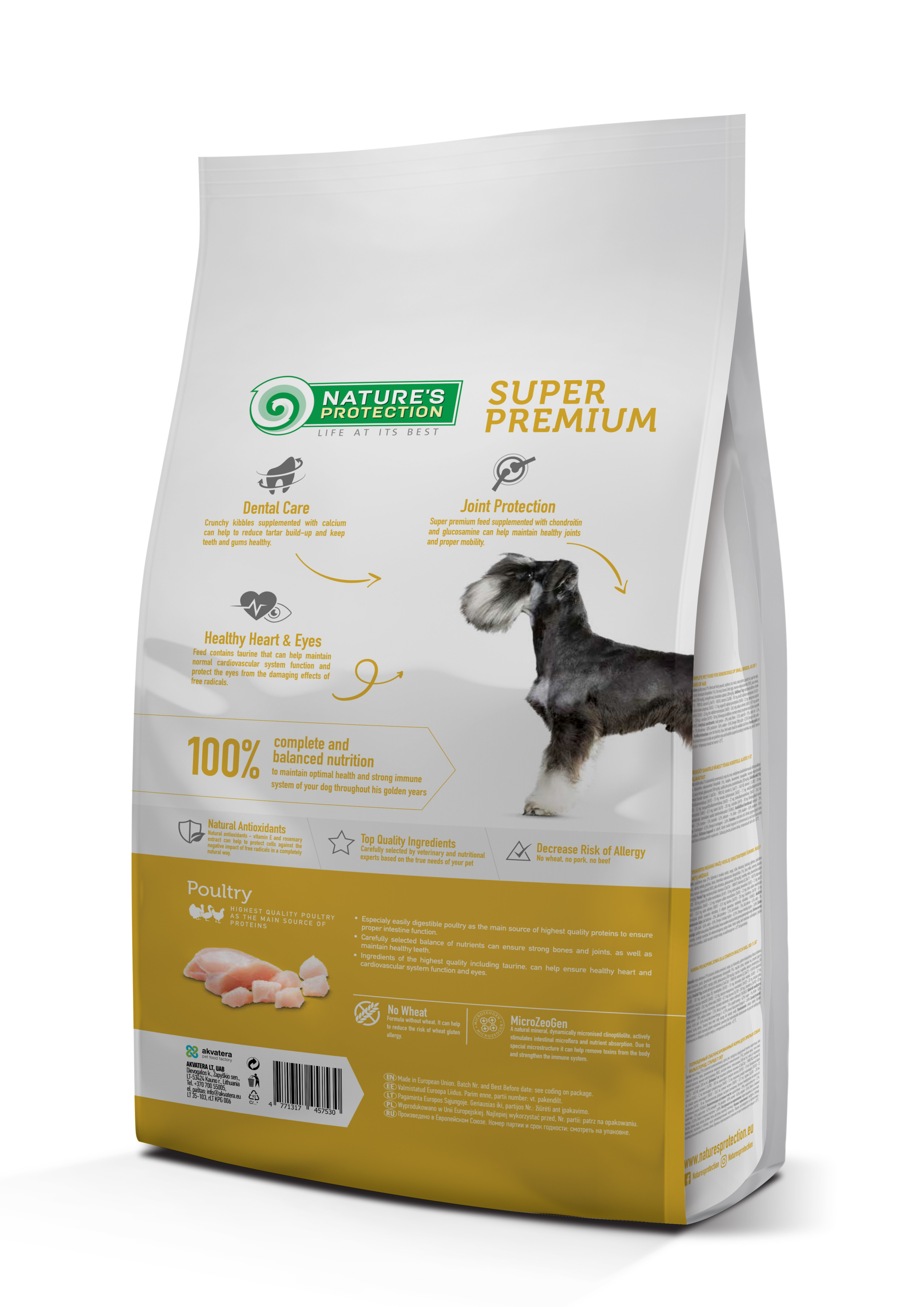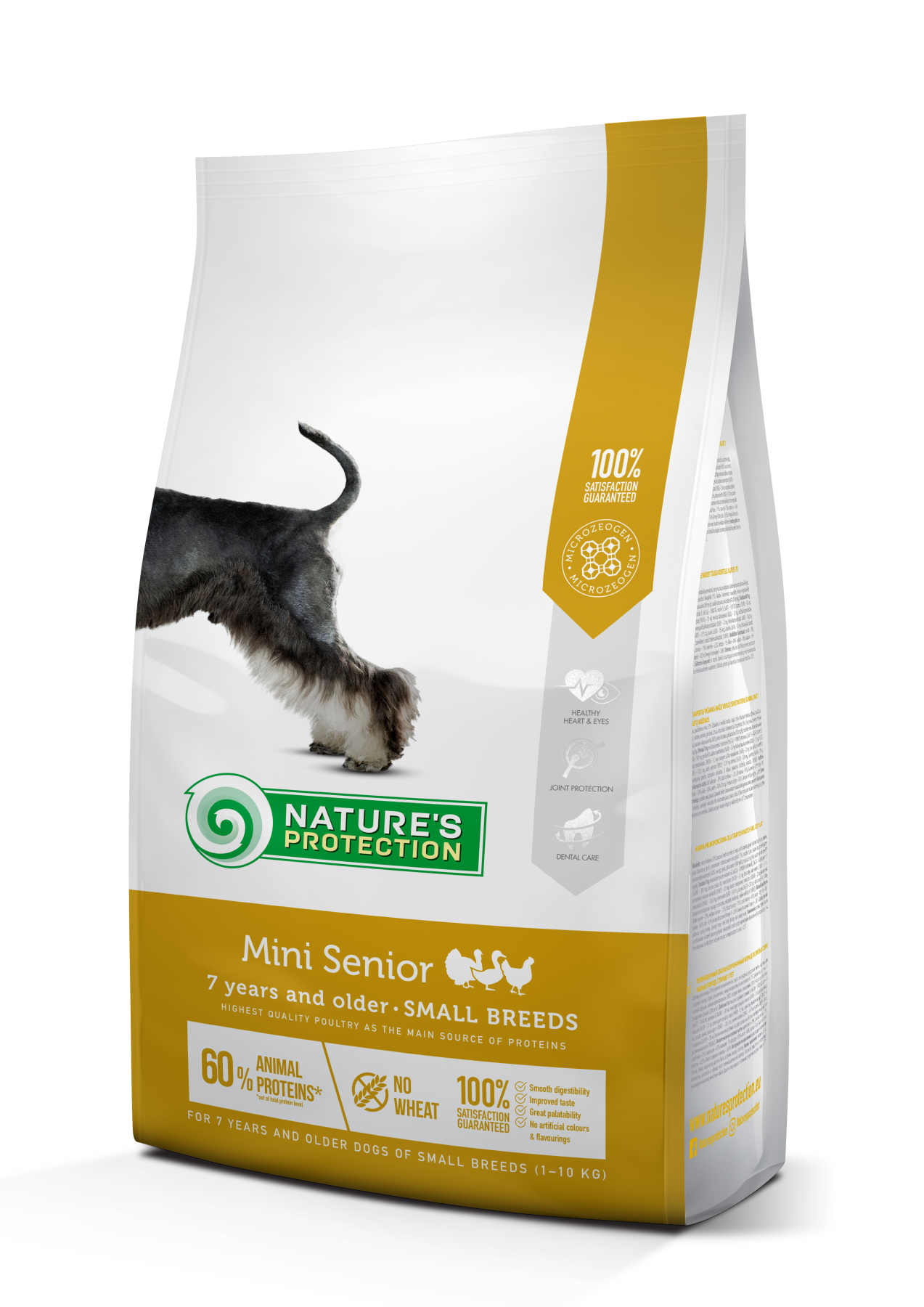 Корм Nature's Protection Mini Senior для собак малих порід створений на основі інгредієнтів, які ідеально підходять для забезпечення необхідної кількості калорій, вітамінів і мінералів для потреб собаки старшого віку.