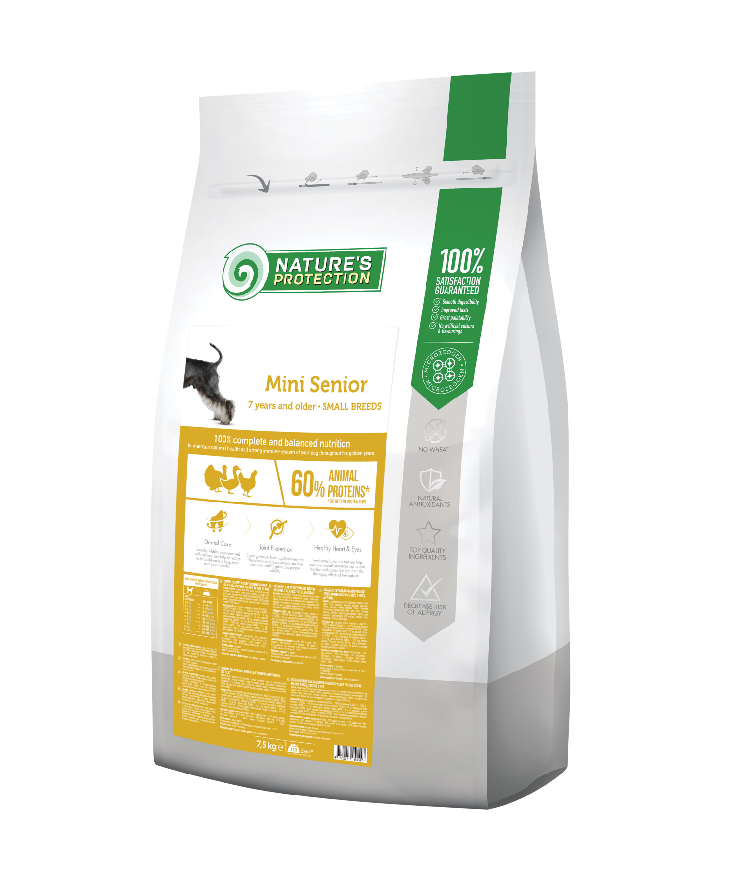 Nature's Protection Mini Senior for 7 years and older Small Breed Dogs with Poultry – сухий корм для собак малих порід від 7 років і старше з м'ясом птиці.