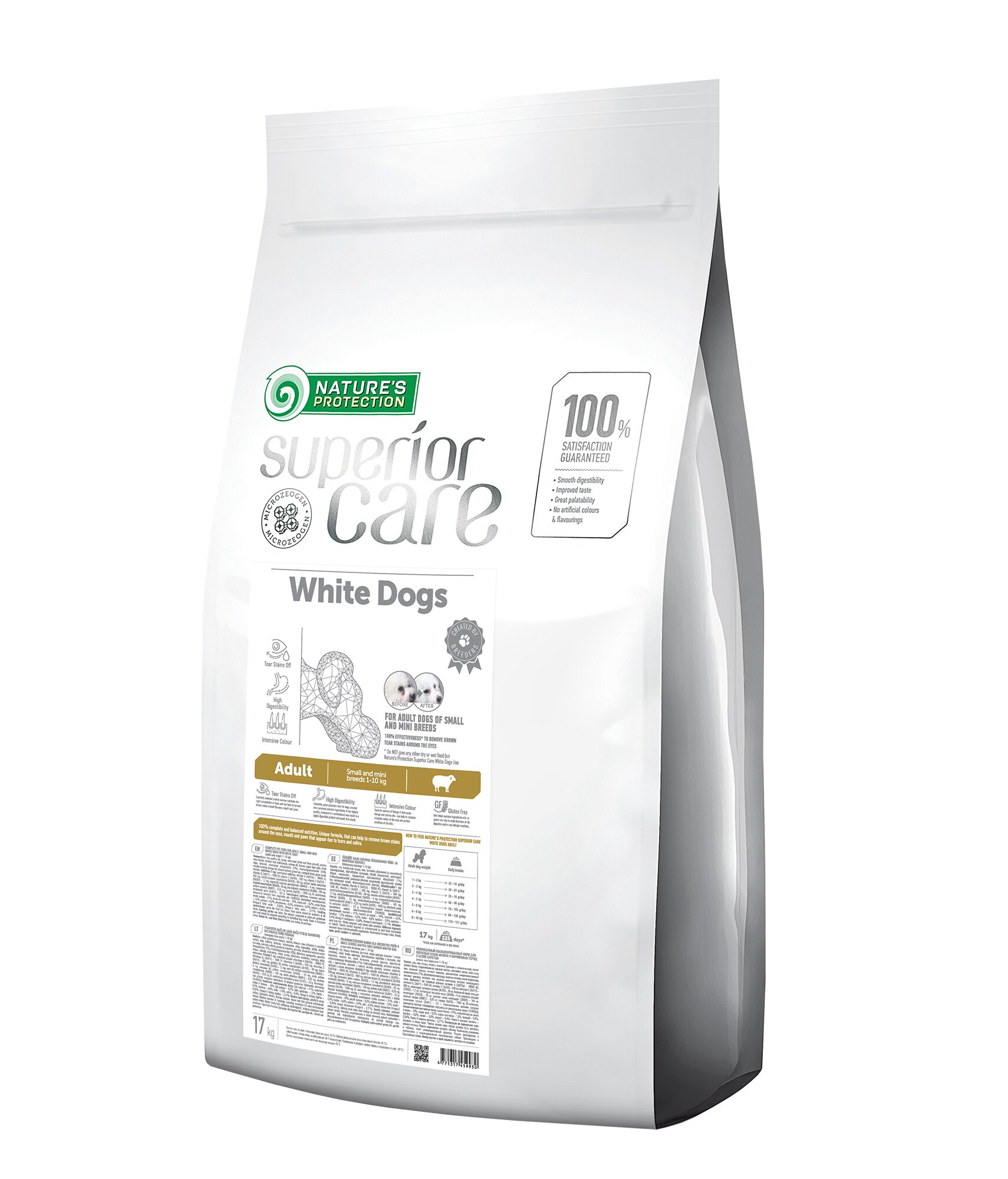 Корми з лінійки Nature’s Protection Superior Care White Dogs підходять усім собакам, незалежно від забарвлення шерсті та не впливають на її колір. Ця серія кормів була розроблена спеціально для усунення коричневих плям від сліз, які найпомітніші саме на білій і світлій шерсті вихованців. Проте включення цього корму до раціону собак із темним забарвленням шерсті не призводить до її висвітлення або зміни кольору.