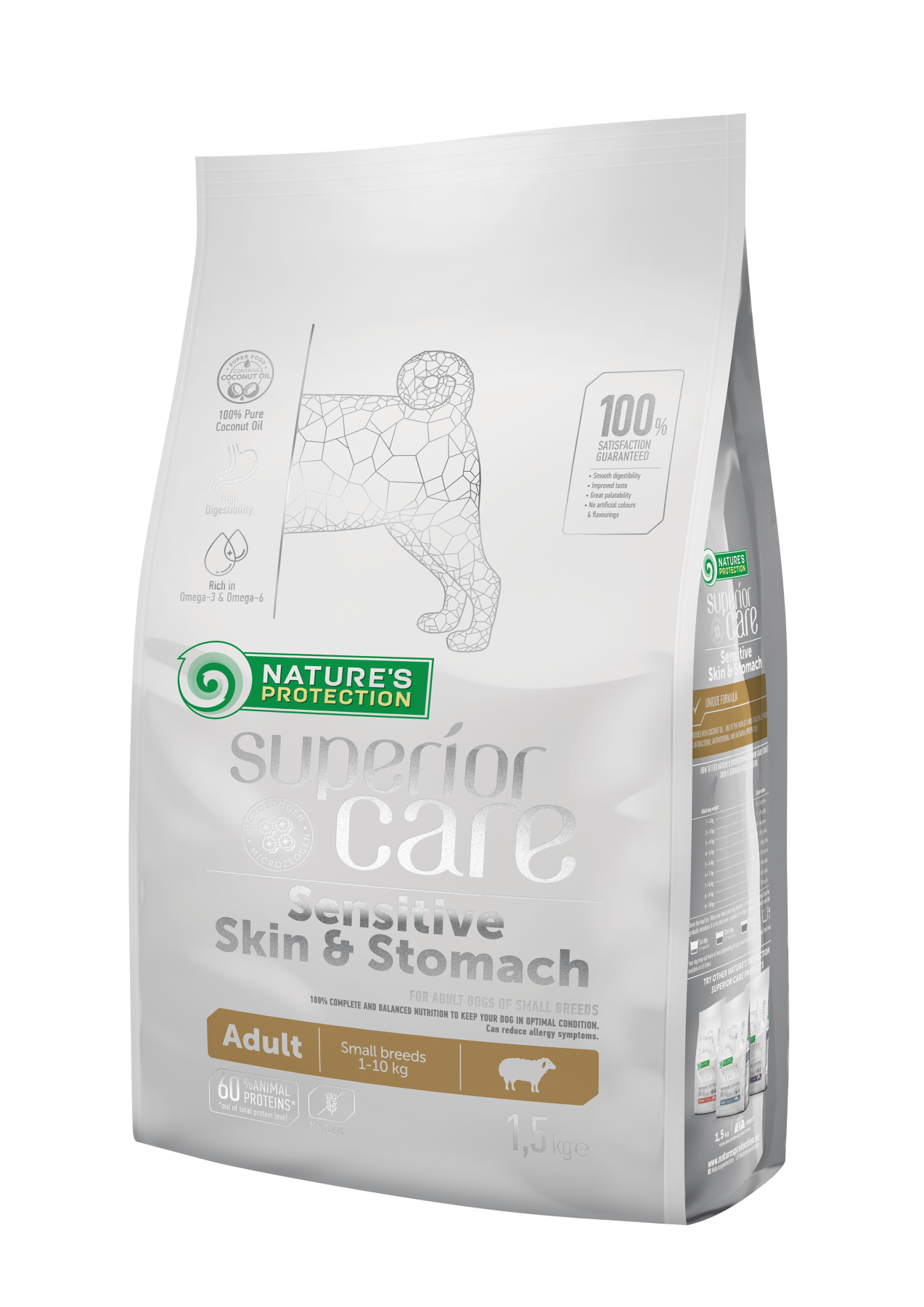 Nature's Protection Superior Care Sensitive Skin&Stomach Adult Small Breeds Сухий корм для дорослих собак малих порід із чутливим травленням з ягням, 1,5 кг
