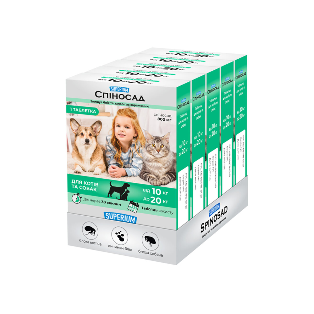 SUPERIUM Spinosad – протипаразитарний засіб у формі таблетки природного походження, розроблений для захисту котів і собак від бліх та інших ектопаразитів. Забезпечує тривалий захист і може застосовуватись протягом усього року.