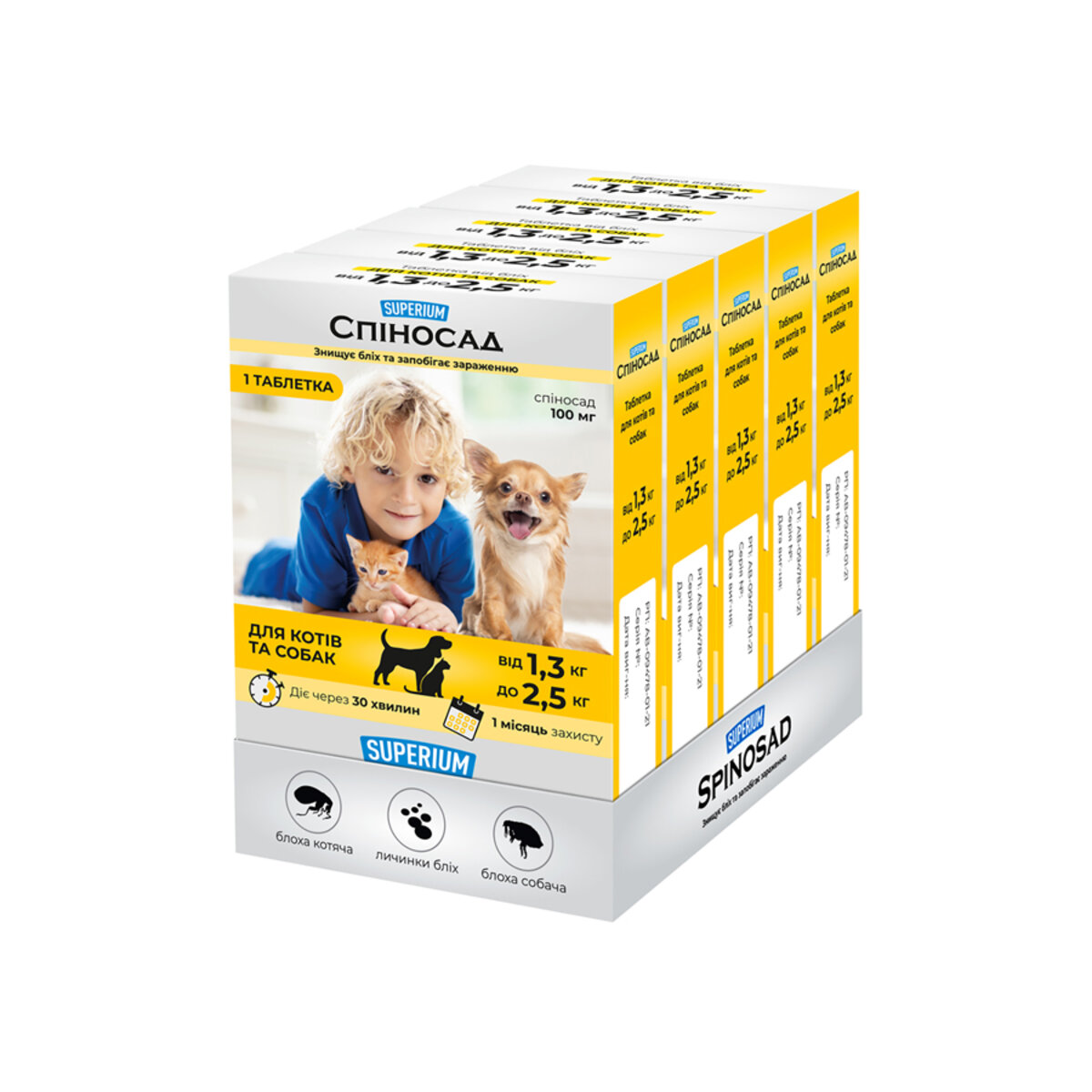 SUPERIUM Spinosad – протипаразитарний засіб у формі таблетки природного походження, розроблений для захисту котів і собак від бліх та інших ектопаразитів. Забезпечує тривалий захист і може застосовуватись протягом усього року.