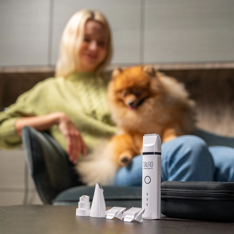 Машинка для догляду за домашніми улюбленцями Tauro Pro Line поєднує машинку для стрижки шерсті та лап і шліфувальну машинку для кігтів, суттєво полегшуючи догляд за домашніми улюбленцями.