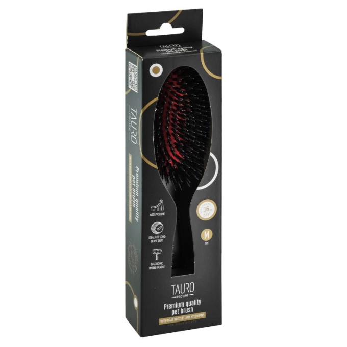 Щітка Tauro Pro Line Prestige Collection Beechwood з нейлоновими штифтами та щетиною кабана – це преміальний інструмент для догляду, створений професіоналами для спрощення розчісування домашніх улюбленців.