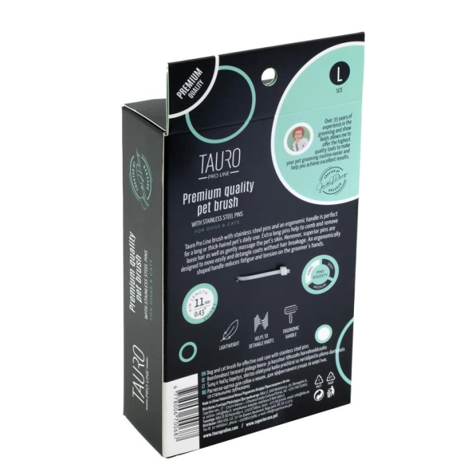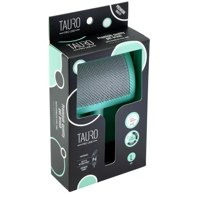 Вигнуту щітку Tauro Pro Line можуть використовувати як професійні грумери, так і власники, які піклуються про шкіру та шерсть улюбленців.