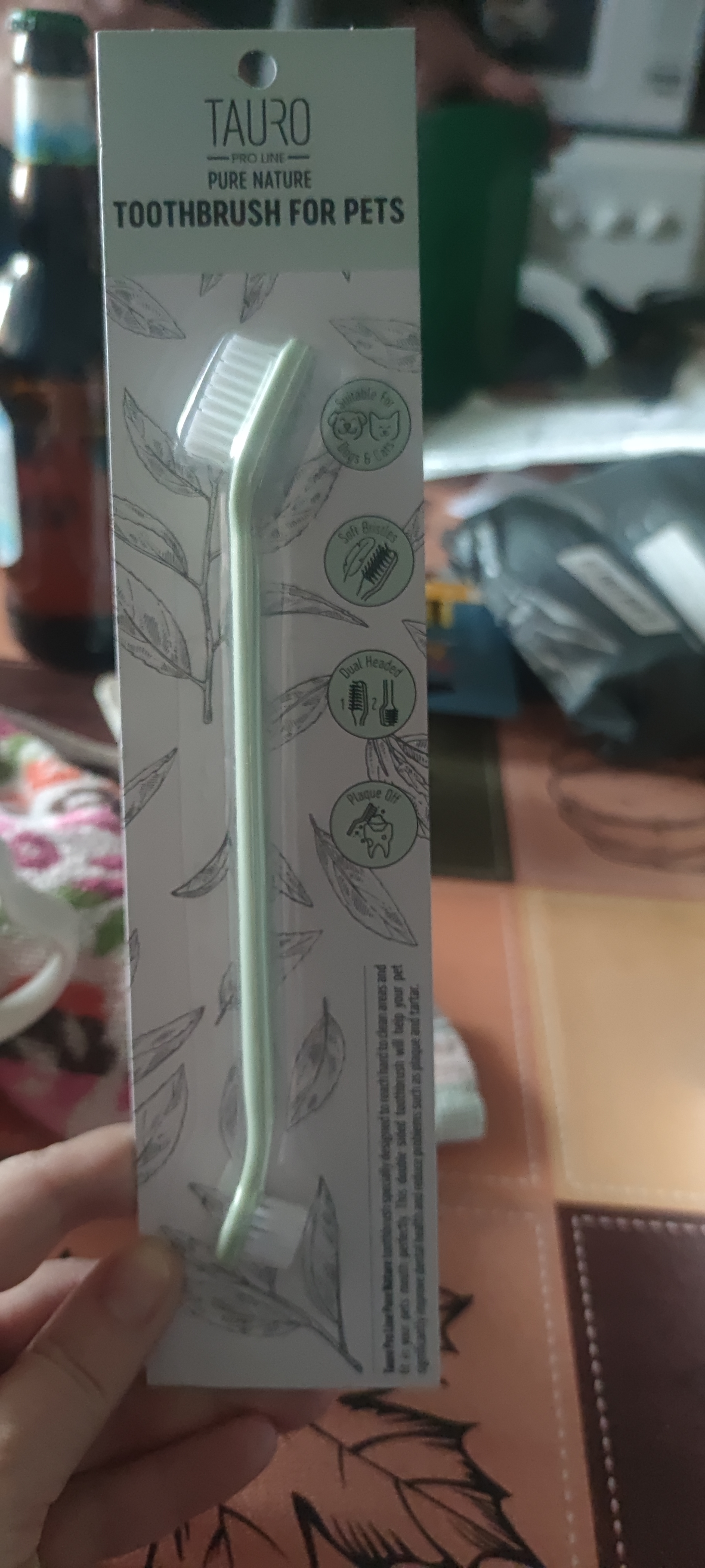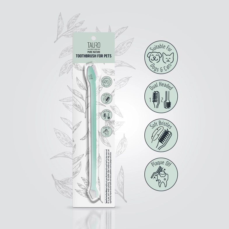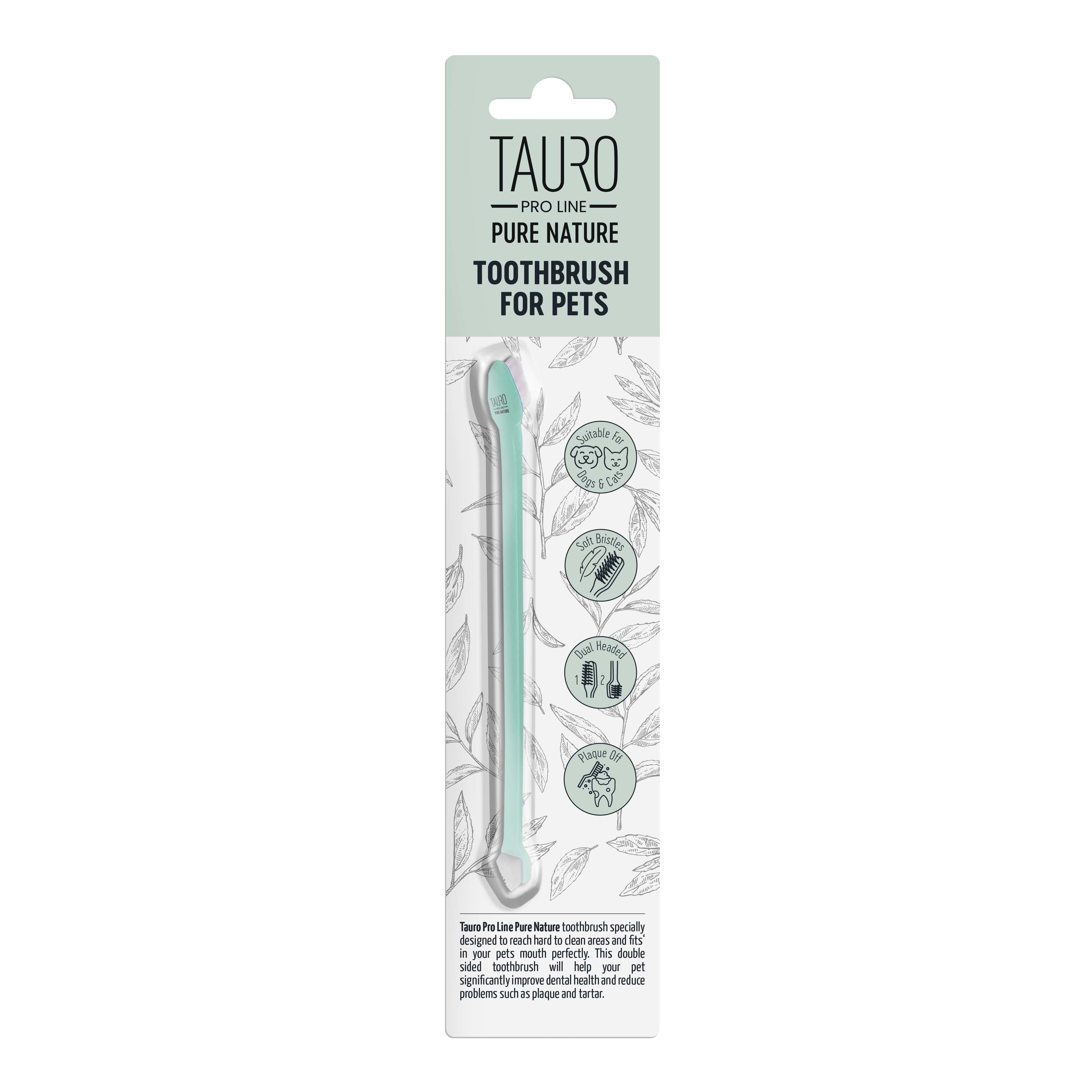 Двостороння зубна щітка Tauro Pro Line Pure Nature – це спеціально розроблений інструмент для гігієни домашніх улюбленців, який ефективно доглядає за ротовою порожниною та зубами, зберігаючи їх здоров'я. М'які щетинки роблять процес чищення зубів набагато приємнішим для вашого вихованця. Завдяки їм зубний наліт, що накопичується між зубами, ефективно та безболісно видаляється. Регулярний і правильний догляд за зубами та язиком вашого улюбленця знижує ризик утворення нальоту та зубного каменю, а також нейтралізує неприємний запах з рота.