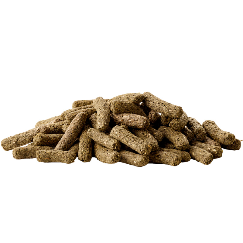 - екструдовані гранули виробляють на основі сіна тимофіївки, що вирізняється високим вмістом фітолітів, а також інших корисних трав, які тварини можуть знайти в дикій природі;