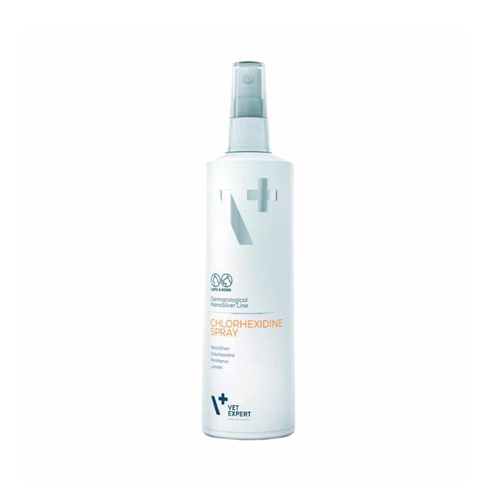 Антибактеріальний спрей для котів і собак Vet Expert NanoSilver Chlorhexidine належить до інноваційної дерматологічної лінійки з наносріблом (колоїдним сріблом), що забезпечує потужну бактерицидну дію та захист від патогенних мікроорганізмів. Завдяки наночастинкам срібла концентрація речовини значно знижена, проте всі антибактеріальні властивості зберігаються. Спрей ефективно допомагає при захворюваннях шкірного покриву та ураженнях різного походження.