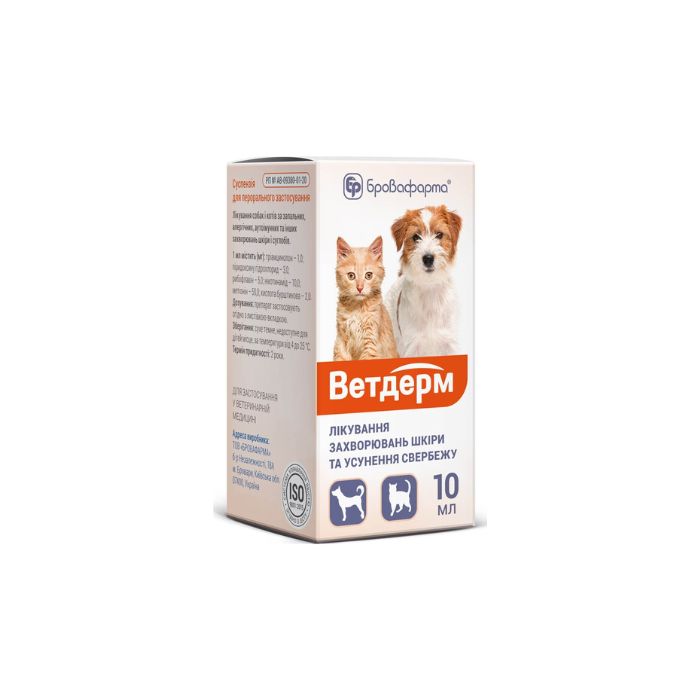 Brovafarma Ветдерм Суспензія для лікування захворювань шкіри та усунення свербежу, 10 мл