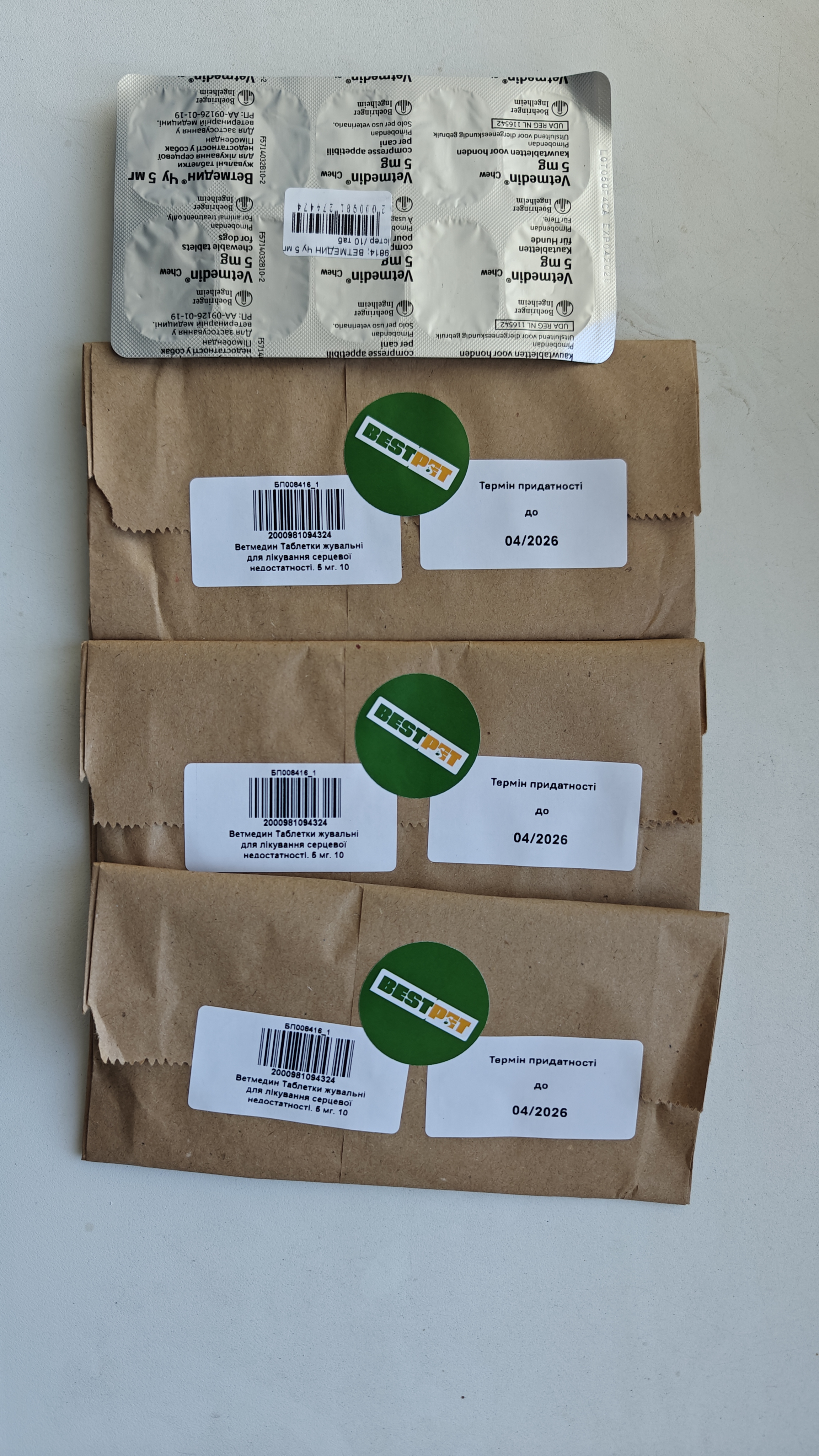 Ветмедин (Vetmedin) Таблетки жувальні для лікування серцевої недостатності 5 мг, 10 таблеток
