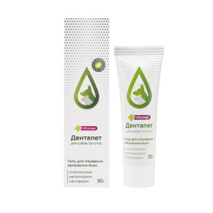 Гель Vitomax Дентапет – це протимікробний комбінований препарат для комплексного лікування та профілактики деяких інфекційно-запальних захворювань ротової порожнини у собак і котів.