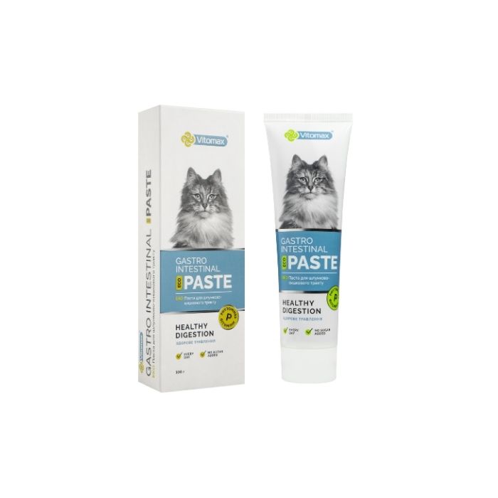 Вітамінізована паста для підтримки шлунково-кишкового тракту котів Vitomax Eco сприяє нормалізації обміну речовин і очищенню організму улюбленця.
