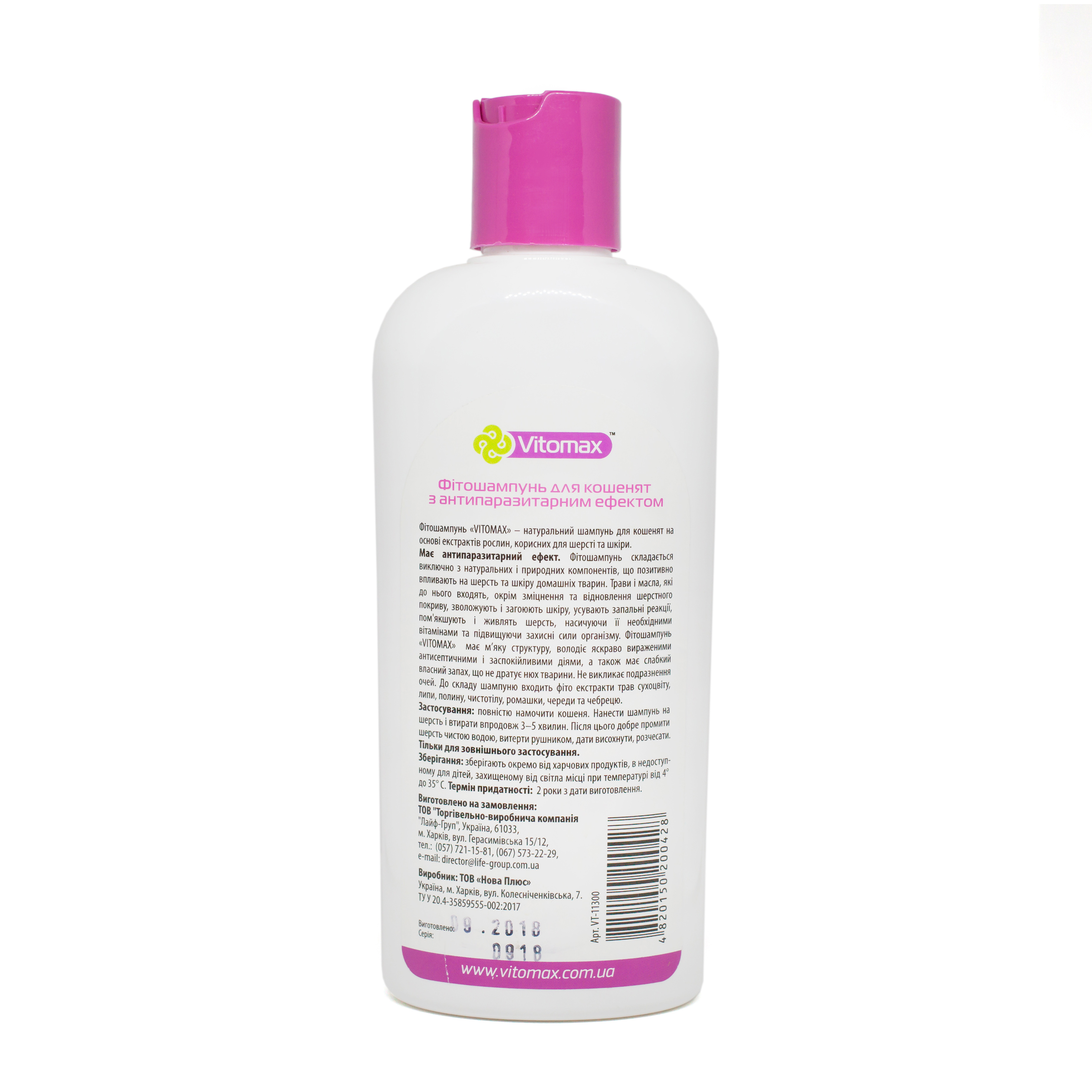 - Фітошампунь має м’яку структуру, виражену антисептичну та заспокійливу дію, а також слабкий натуральний аромат, що не подразнює нюх тварини та не спричиняє подразнення очей.