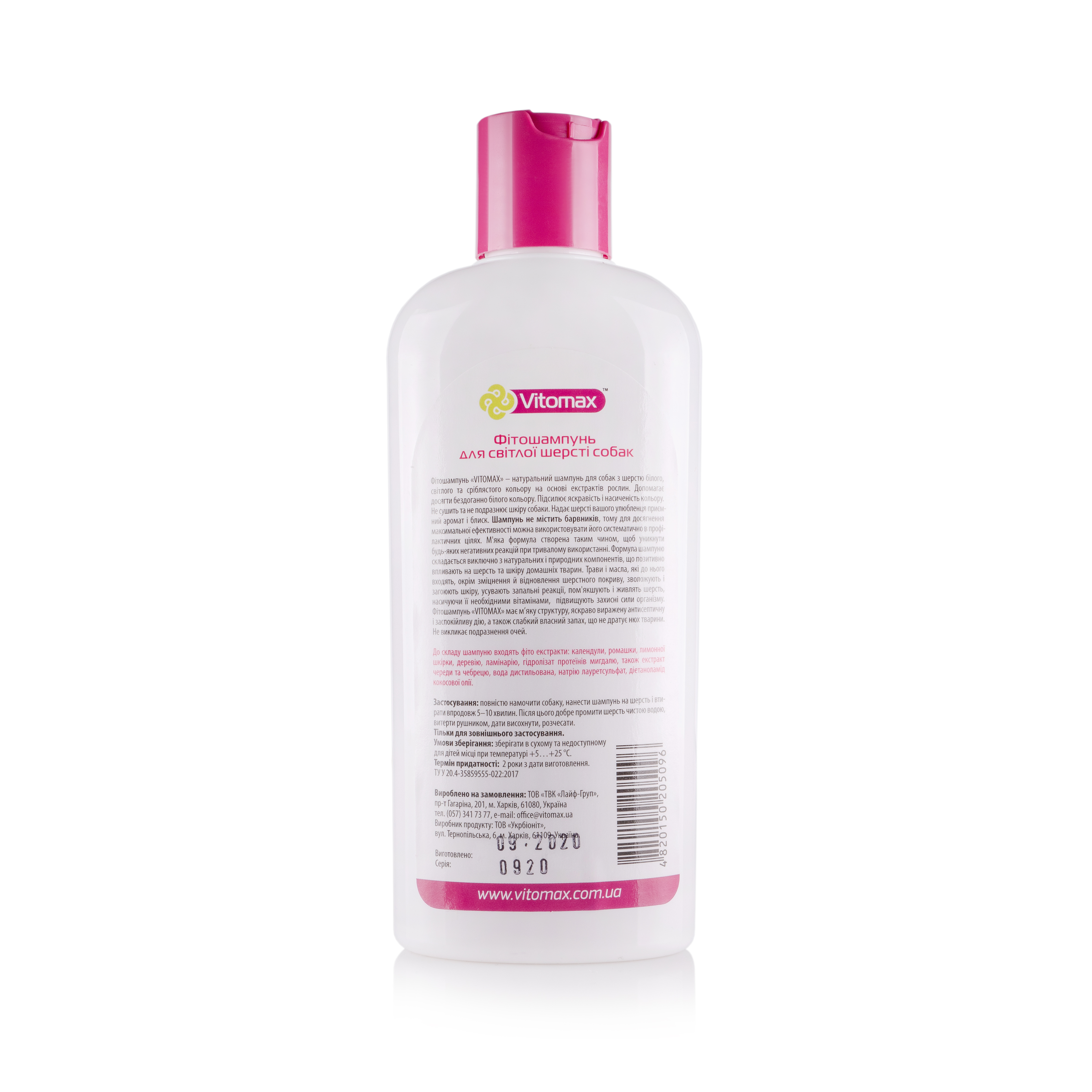 Натуральний шампунь для собак із білим, світлим або сріблястим забарвленням шерсті містить у складі натуральні рослинні екстракти.