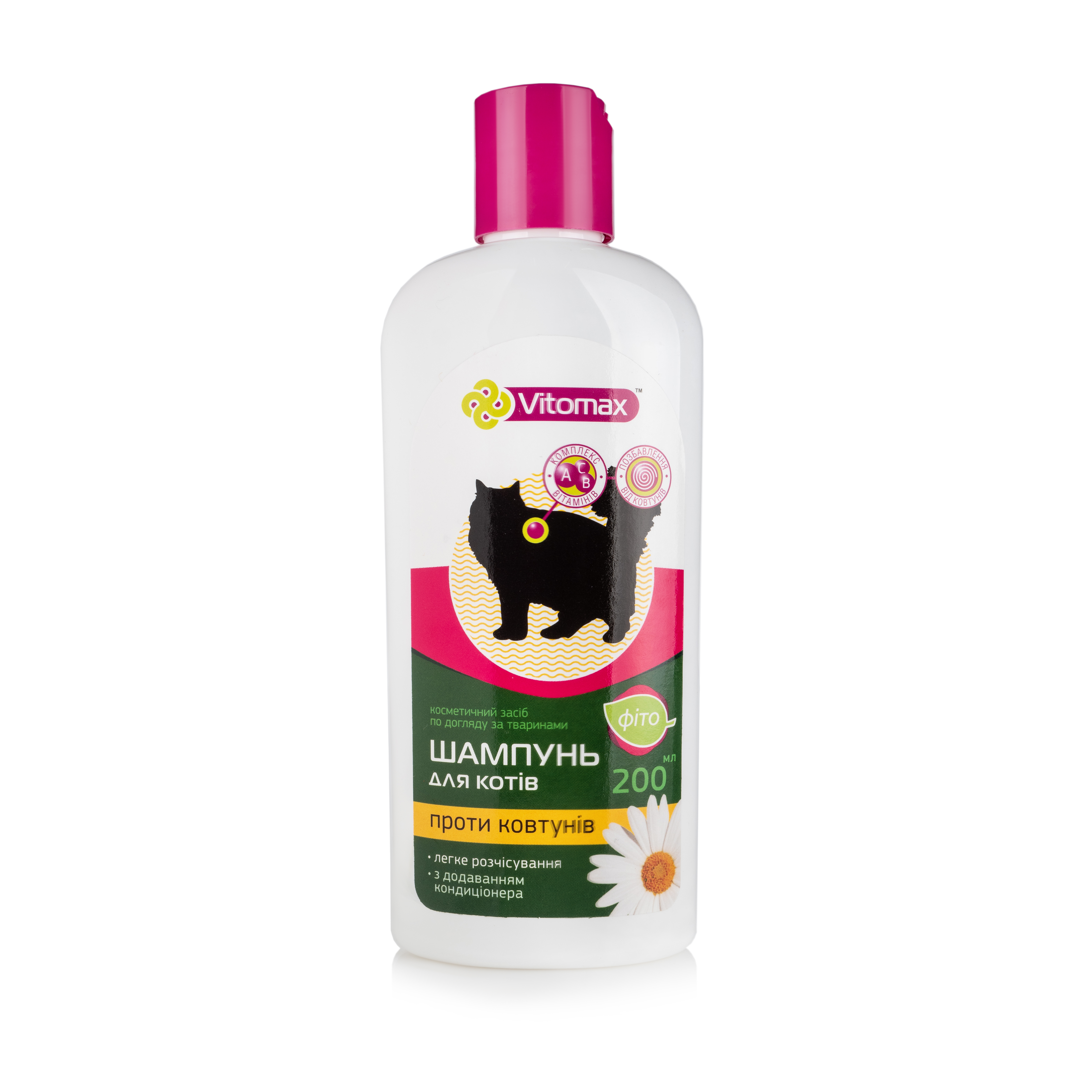 Натуральний шампунь для кішок проти появи ковтунів містить натуральні рослинні екстракти.