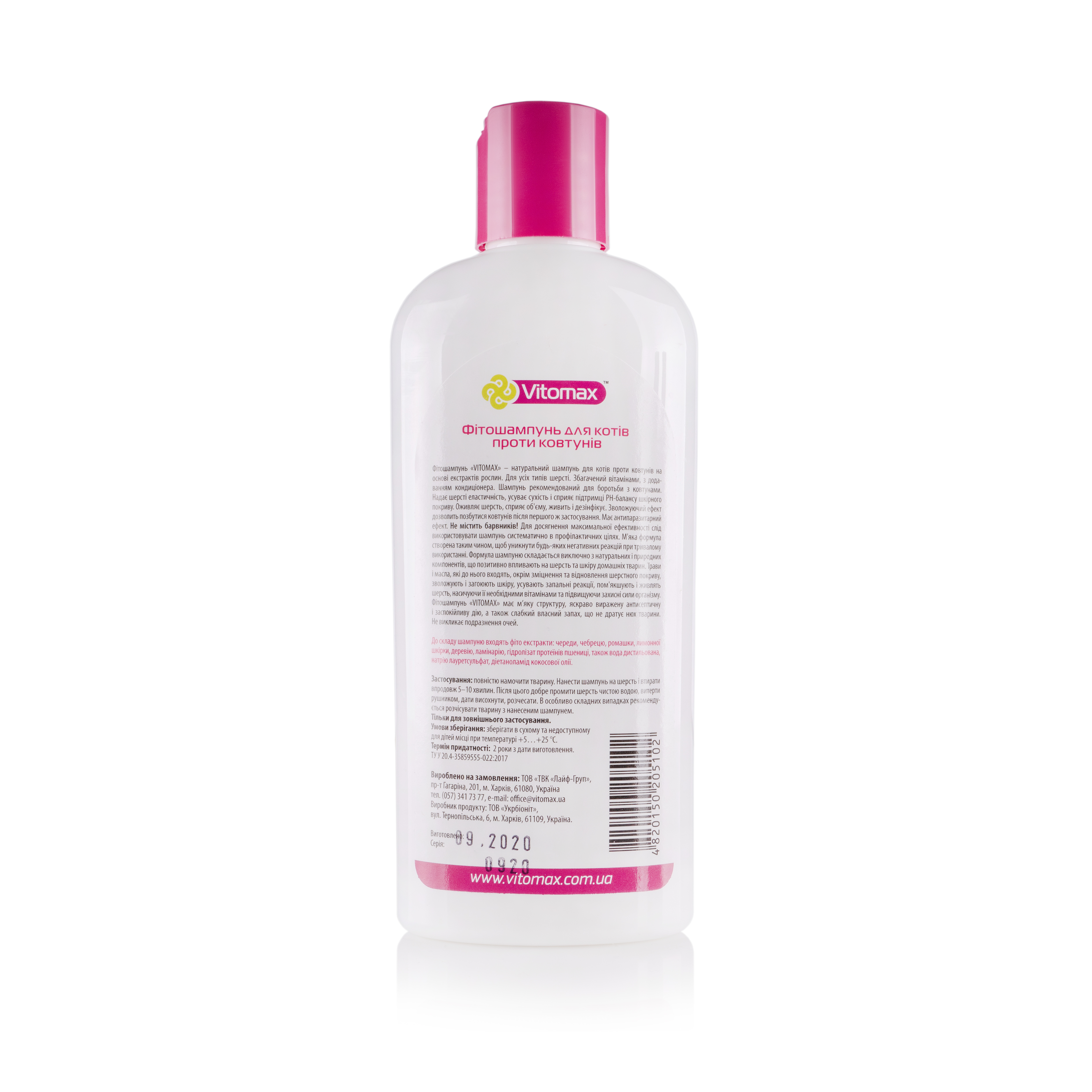 - Фітошампунь має м’яку структуру, виражену антисептичну та заспокійливу дію, а також слабкий натуральний аромат, що не подразнює нюх тварини та не спричиняє подразнення очей.